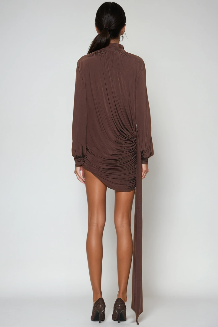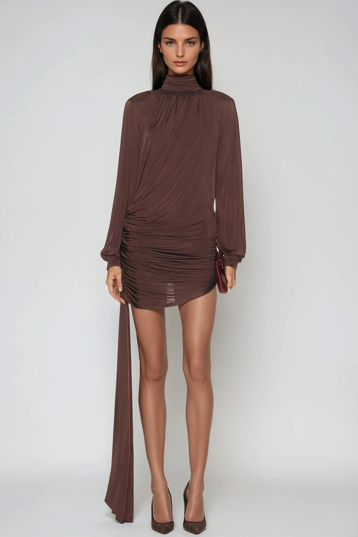 The Domenica High Neck Ruch Fringe Mini Dress combines contemporary silhouette with refined detailing. The elevated neckline provides structure and sophistication, while strategic ruching creates flattering dimension through the bodice. Delicate fringe trim adds movement and textural interest to the hemline, delivering an effortlessly polished look. Perfect for evening occasions or upscale casual settings, this piece transitions seamlessly from season to season. The mini length offers modern proportion, making it an essential addition to any curated wardrobe.