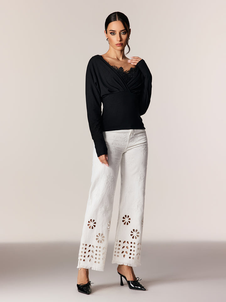 Edgaras V Neck Lace Ruch Top