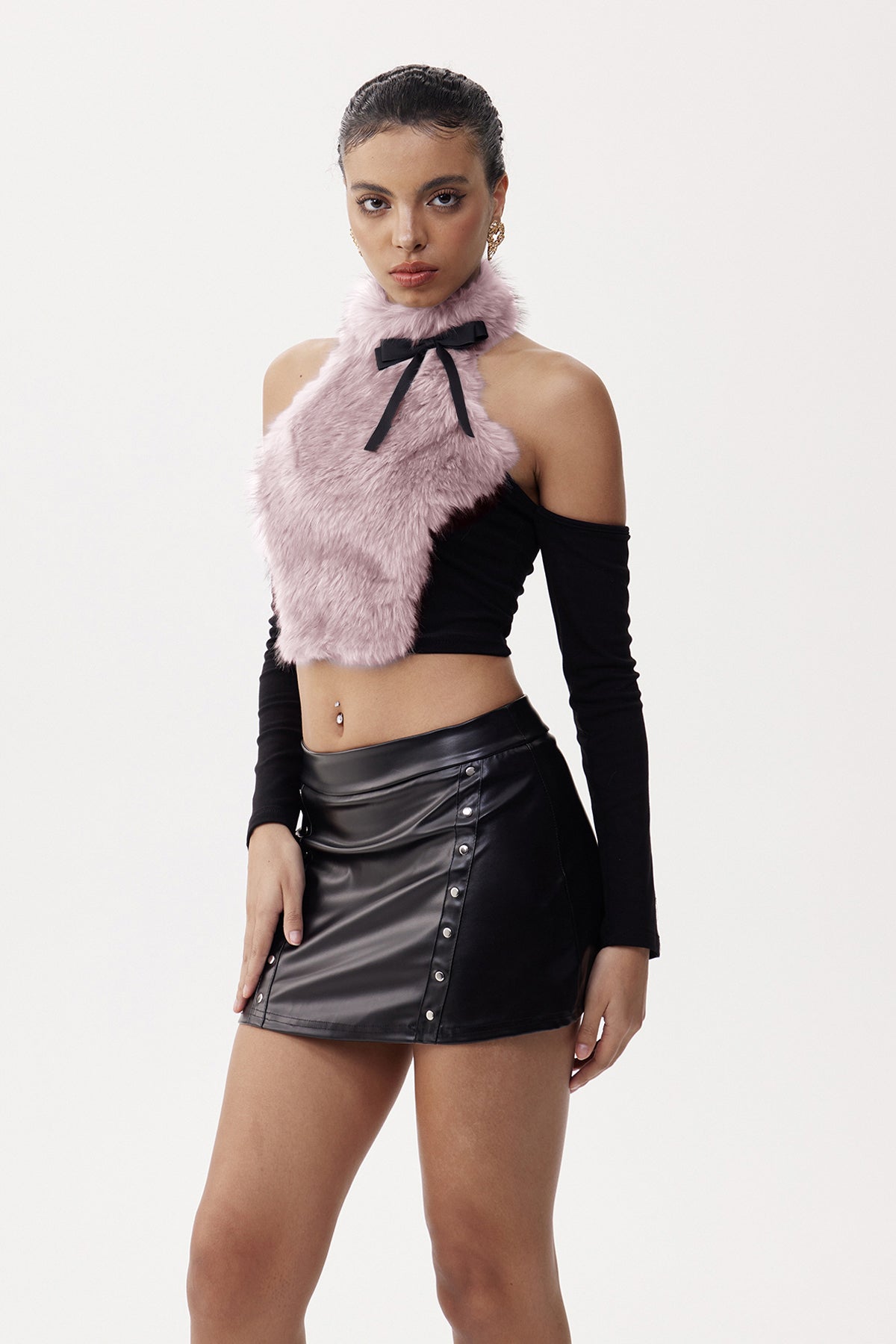 The Elihu Faux Fur Cutout Top in Pink delivers refined elegance with a contemporary twist. This sophisticated piece showcases sumptuous faux fur in a striking pink hue, accented by thoughtfully designed cutouts that create dimension and visual allure. The soft, plush texture provides luxurious comfort while maintaining a lightweight feel ideal for layering or standalone wear. The pale pink shade offers a fresh alternative to neutrals, complementing both minimalist and bold styling approaches. Whether styled for evening occasions or elevated casual settings, this top makes a confident statement while remaining versatile enough for repeated wear throughout your season.