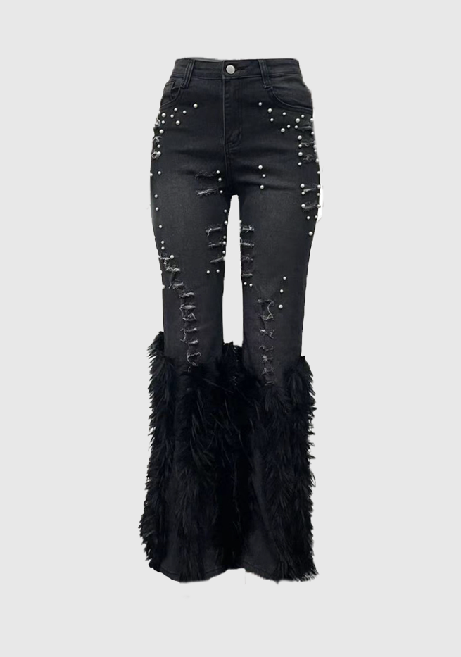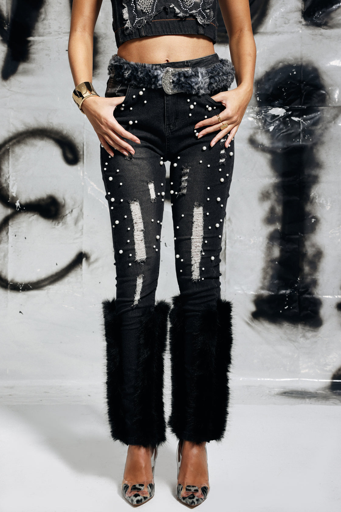 Expertly crafted with a unique and stylish design, our Gretchen Fur Torn Pearl Jeans offer a combination of comfort and luxury. Made with high-quality materials, these jeans feature a beautiful fur patchwork and pearl accents, making them a must-have for any fashion-forward individual. Elevate your wardrobe with these statement jeans.