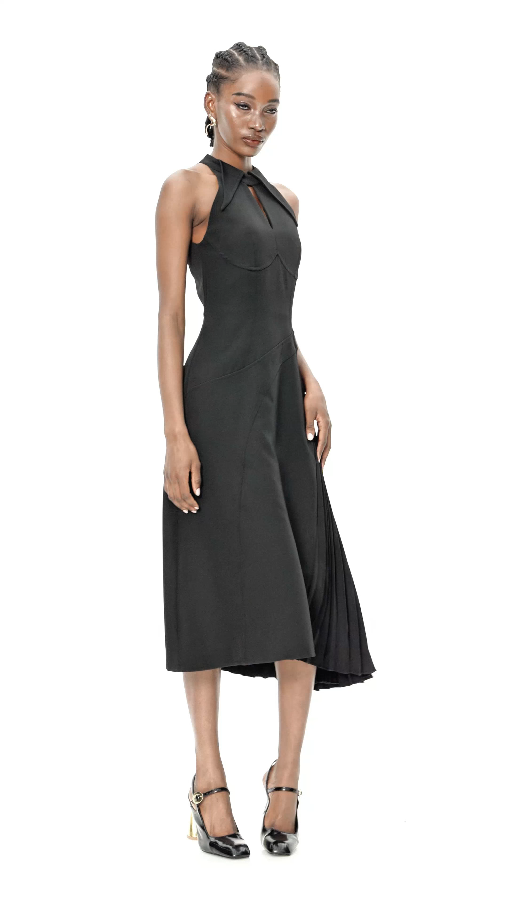 The Zion Sleeveless Ruched Deconstruct Maxi Dress in Black offers a sophisticated silhouette with its expertly tailored ruching and deconstructed design elements. Crafted to provide both elegance and comfort, this sleeveless maxi dress enhances your presence with a sleek, modern aesthetic suitable for formal occasions or upscale events. Its black hue ensures versatile styling options, making it a refined addition to any wardrobe.