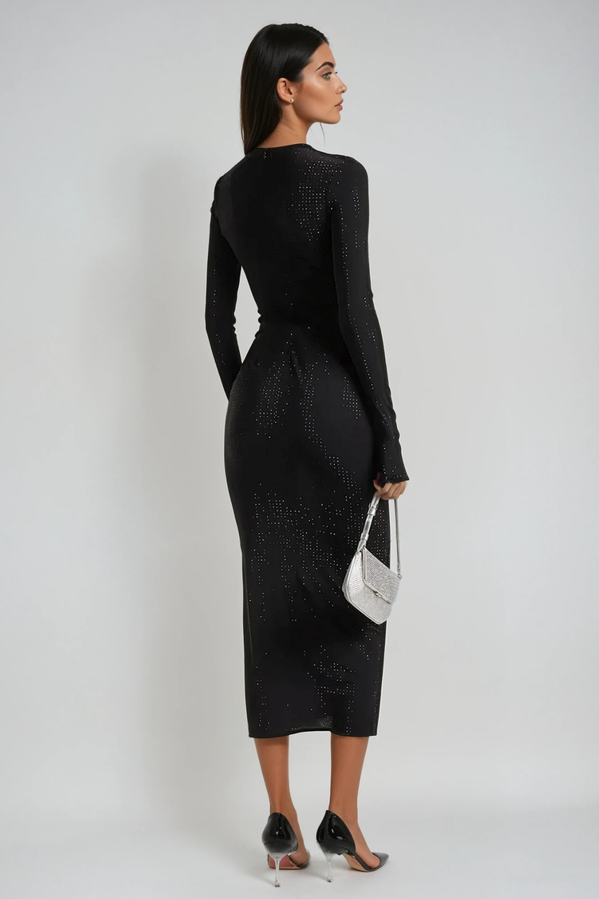 Introducing the Anoki Rhinestone Bodycon Maxi Dress in Black - the perfect dress for any special occasion. This stunning dress features intricate rhinestone detailing and a figure-hugging silhouette, creating a glamorous and elegant look. Made with high-quality materials, this dress offers both style and comfort. Elevate your wardrobe with this must-have dress.