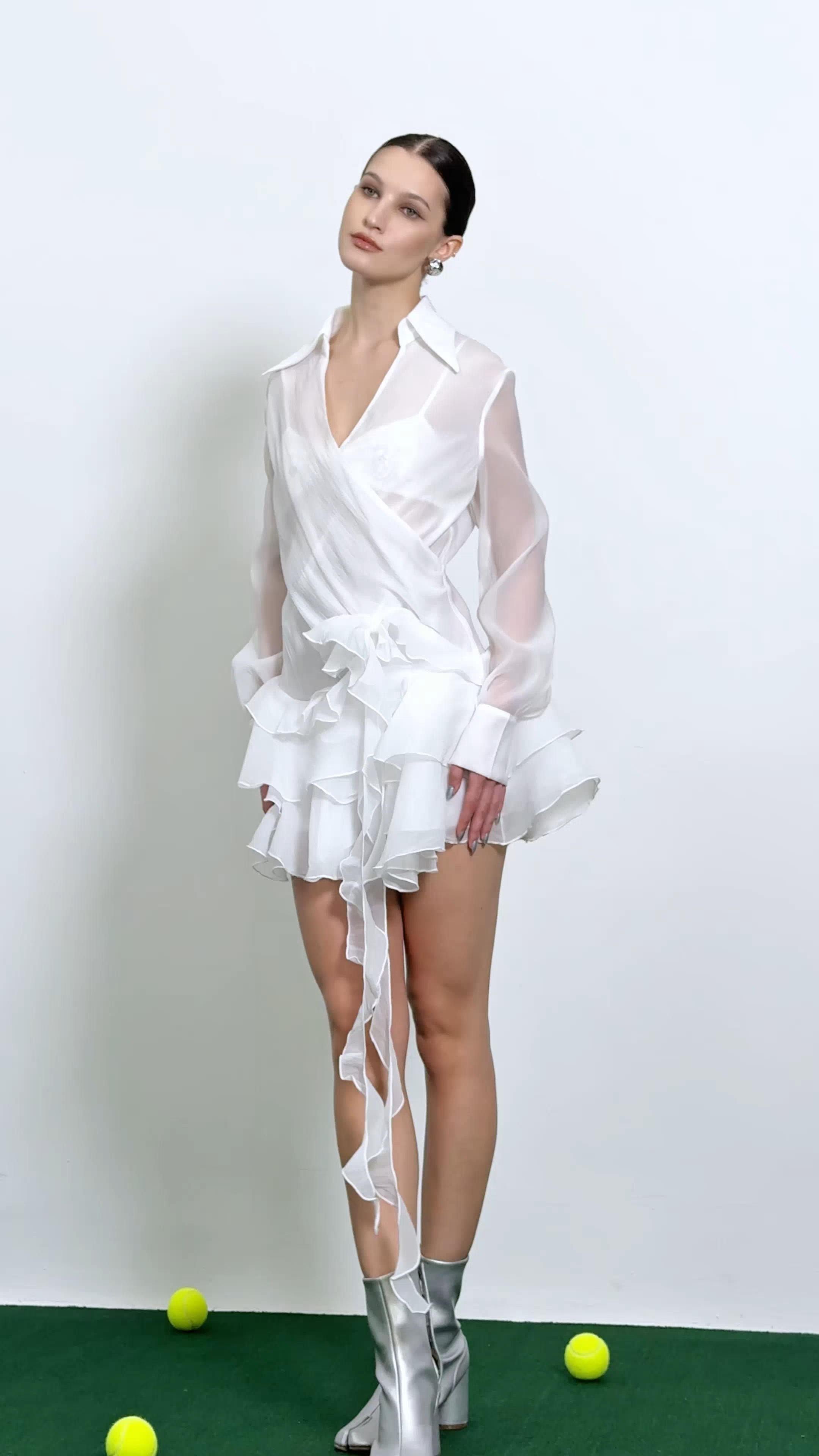 Experience elegance and charm with the Balfour Ruffle Flower Mini Dress in White. Crafted with delicate ruffles and intricate flower detailing, this dress exudes grace and sophistication. Made with high-quality materials, it offers comfort and style for any occasion. Elevate your wardrobe with this timeless piece.