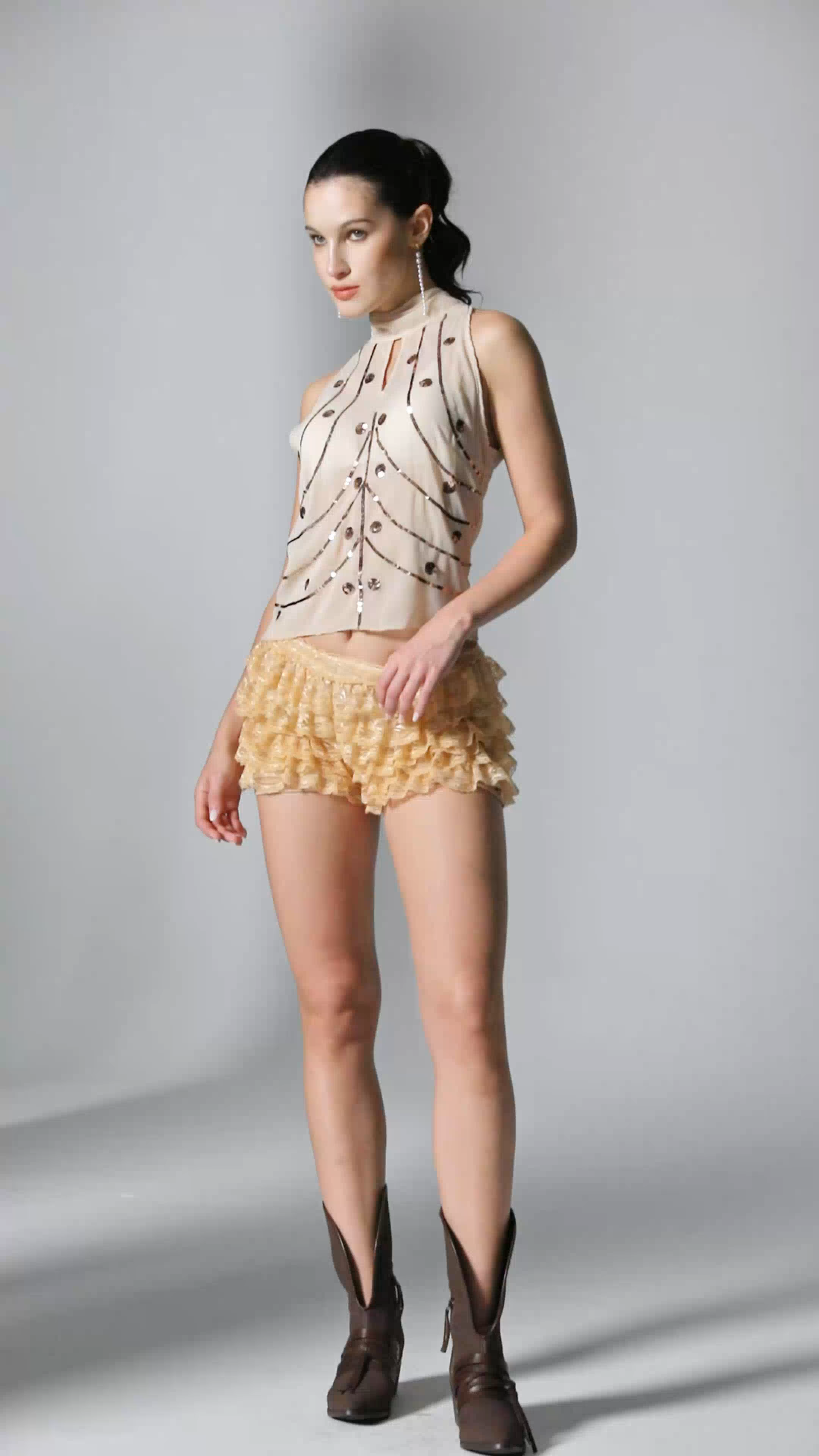 Elevate your wardrobe with the Cailean Sequin Lace Ruffle Pants Set, expertly crafted to combine elegance and contemporary style. Featuring delicate lace detailing and shimmering sequins, this set offers a sophisticated texture contrast, while the ruffle accents add dynamic movement and a refined silhouette. Perfect for formal occasions or stylish evening events, it delivers both comfort and standout appeal with meticulous tailoring and premium materials.