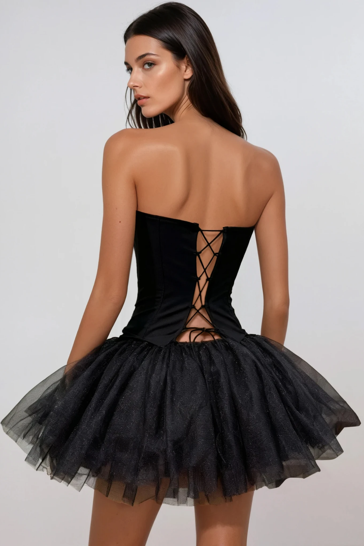 The Dorean Strapless Lace Up Puffy Mini Dress combines contemporary silhouette design with refined construction. This piece features a structured strapless neckline and functional lace-up detailing that allows for customizable fit and visual interest. The voluminous puffy skirt creates dimensional movement while maintaining a polished aesthetic. Crafted for occasions requiring elevated casual wear or semi-formal settings, this dress transitions seamlessly from day to evening. The mini length offers versatility in styling with various footwear options, from minimalist sneakers to statement heels.
