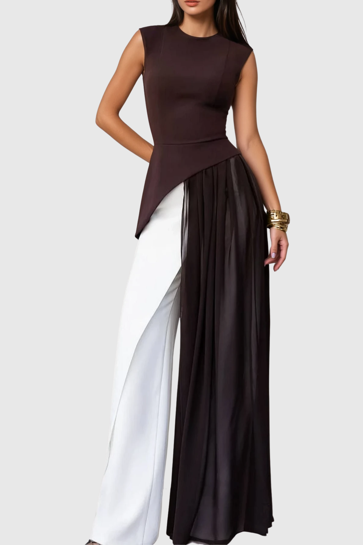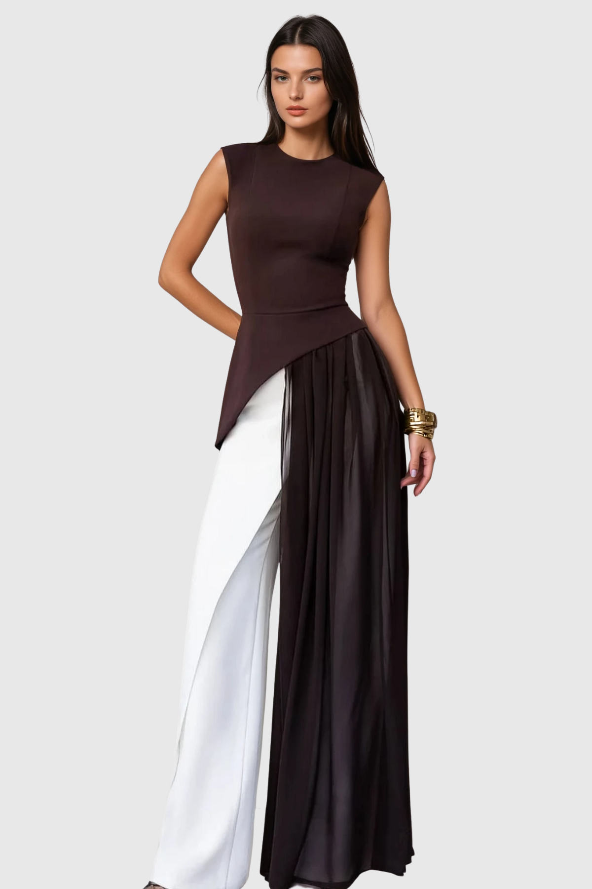 Drusilla Sleeveless Asymmetric Fringe Top The Drusilla top showcases an expertly crafted asymmetric silhouette that commands attention with its dynamic drape and movement. Sleeveless construction offers versatile layering options, while cascading fringe detailing adds textural sophistication and contemporary edge. The asymmetric cut creates a flattering, unconventional neckline that works equally well for evening occasions or elevated casual wear. Constructed with precision tailoring, this piece demonstrates the technical expertise required to balance bold design elements with wearable elegance. Perfect for those seeking statement pieces that transcend seasonal trends.