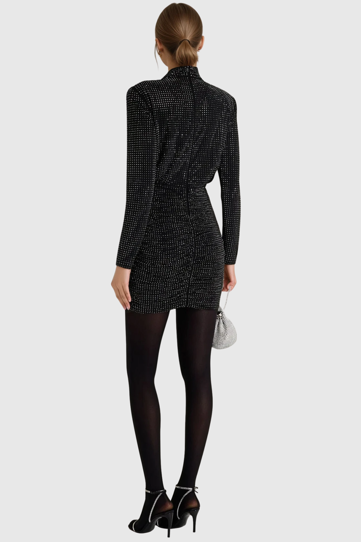 The Duaa High Neck Rhinestone Mini Dress combines contemporary elegance with eye-catching embellishment. Featuring a refined high neckline that frames the face beautifully, this piece showcases intricate rhinestone detailing that catches light with every movement. The mini silhouette offers a modern, versatile cut suitable for evening events, upscale casual occasions, or statement-making nights out. Crafted with attention to detail, this dress delivers sophisticated style with undeniable glamour and presence.