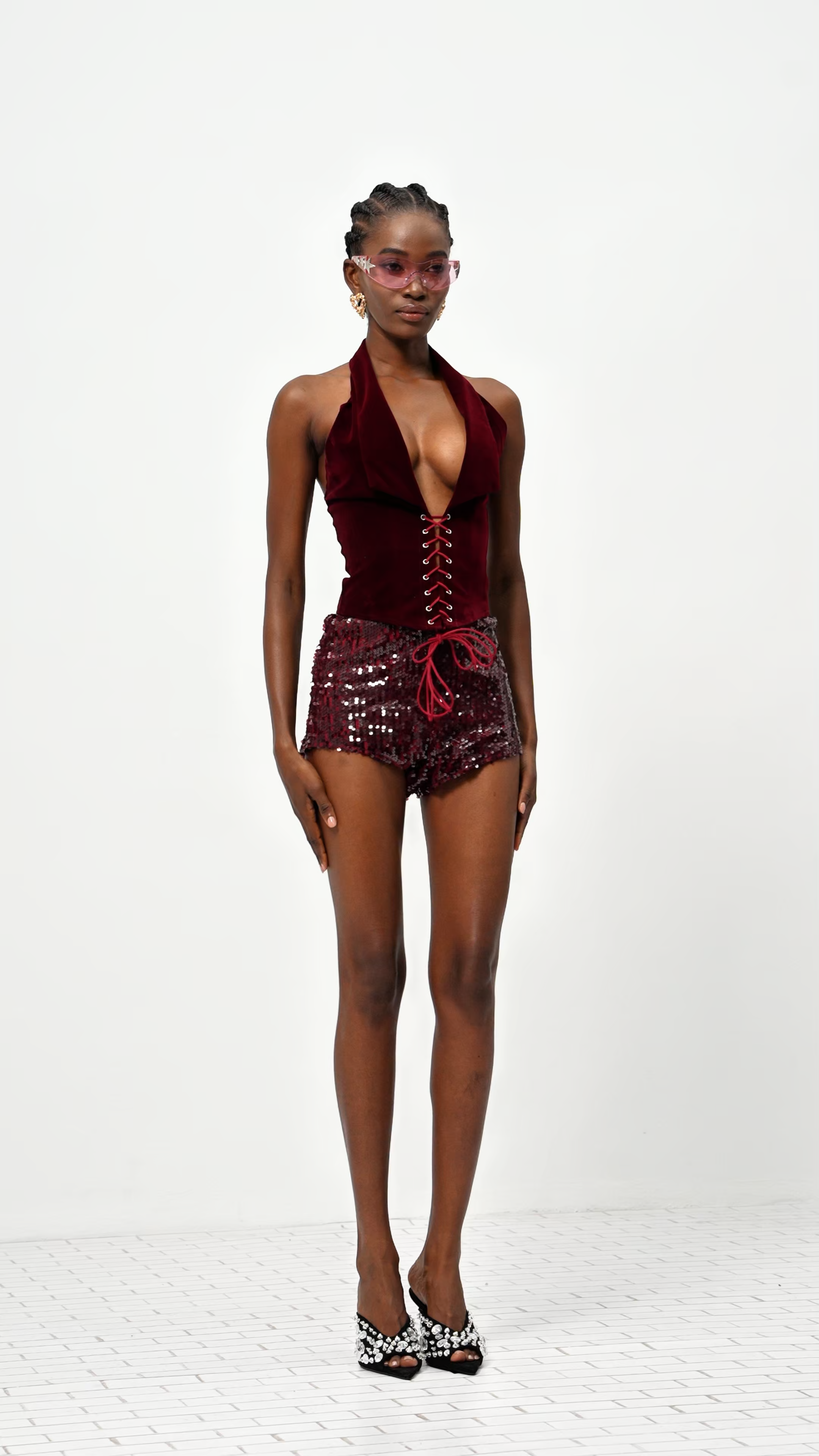 Elevate your wardrobe with the Ermir Lace Up Sequin Pants Set. Crafted for sophistication, this ensemble features dazzling sequins and a stylish lace-up design, ensuring a perfect blend of comfort, glamour, and modern elegance for any occasion.