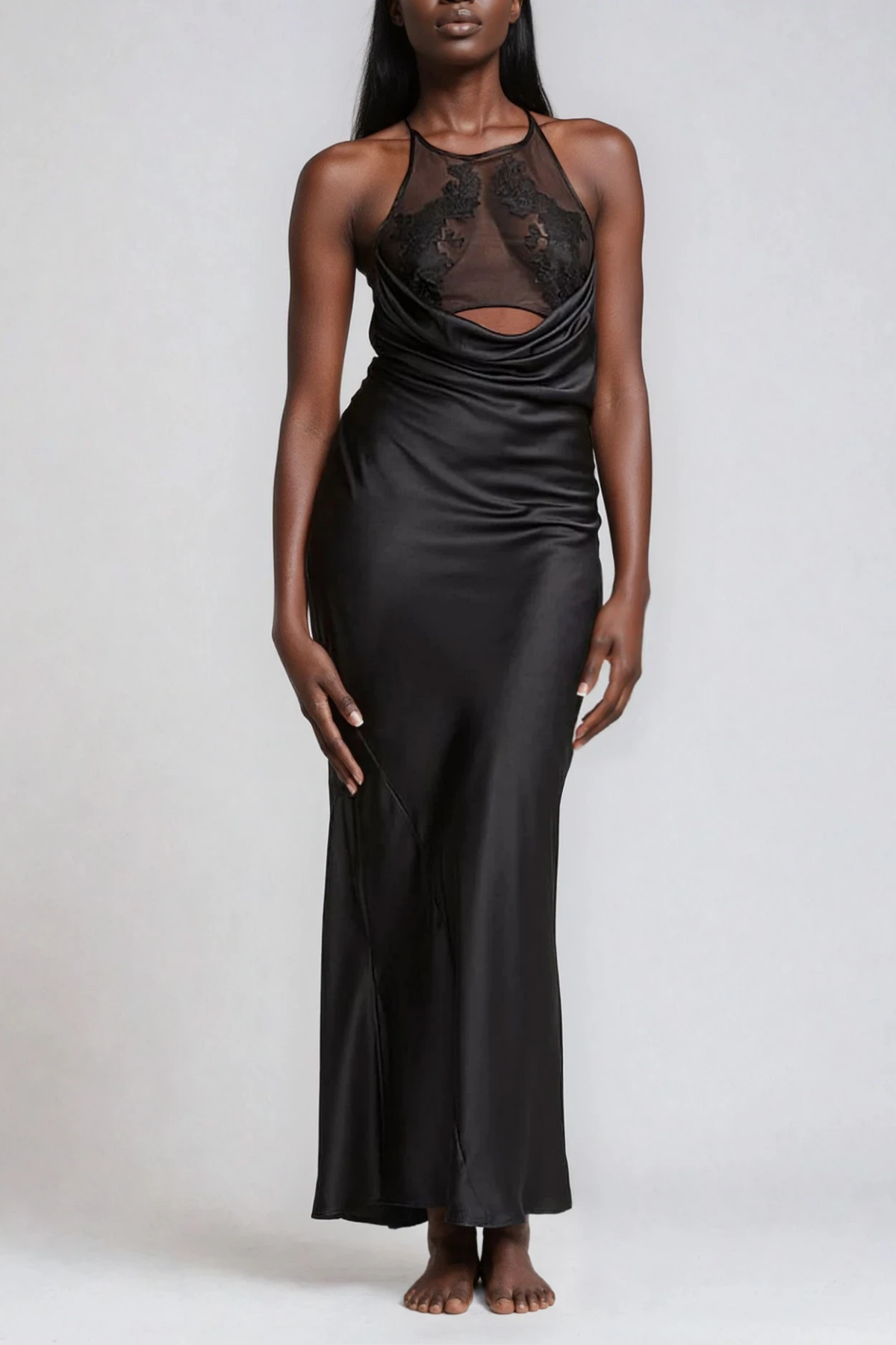Fareeha Lace Cowl Neck Cutout Maxi Dress