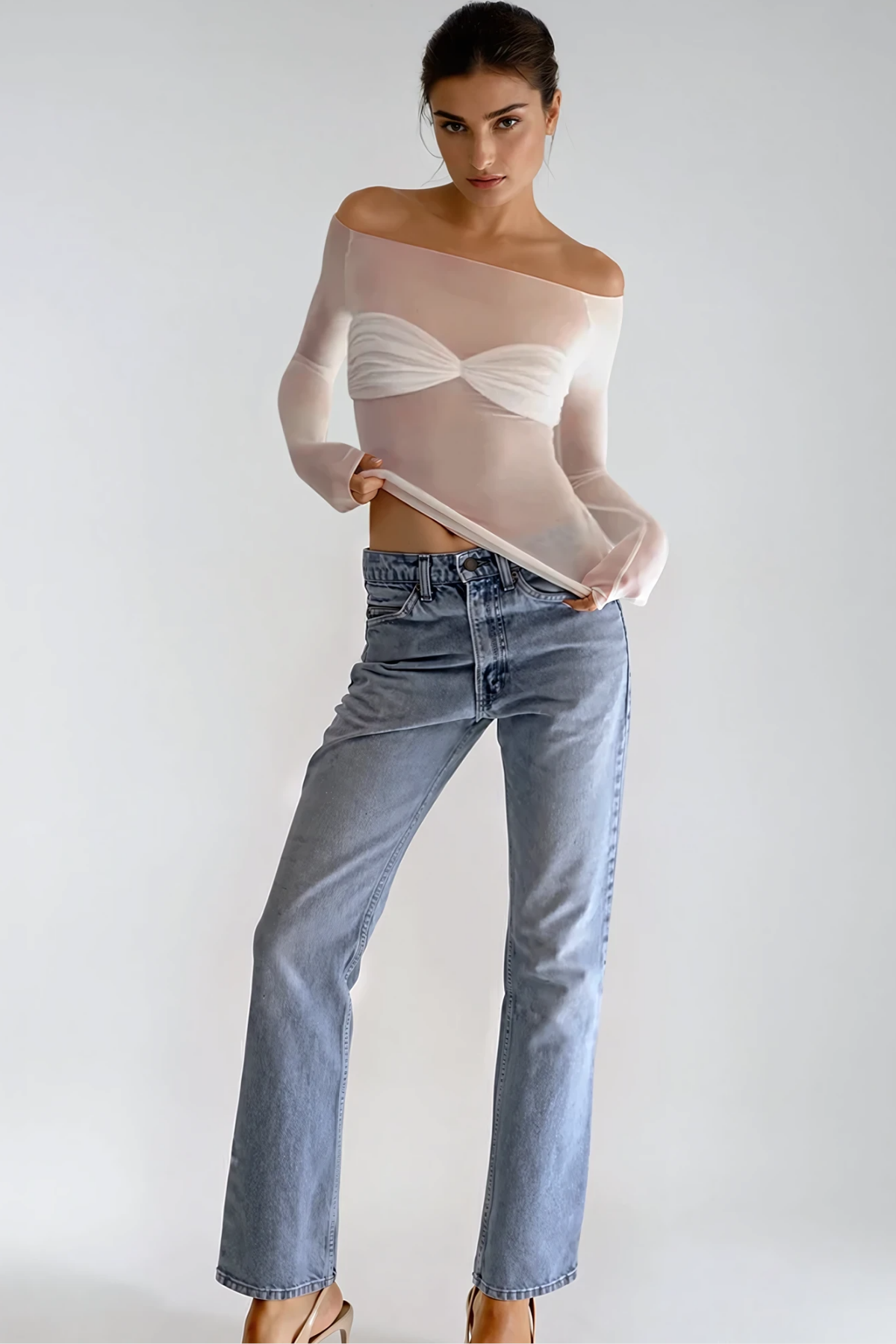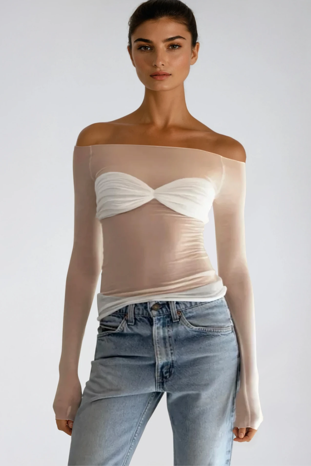 The Fawzi Off Shoulder Mesh Top combines contemporary design with versatile styling. This piece features a flattering off-shoulder silhouette that creates an elegant neckline, while the sheer mesh fabric adds texture and visual interest. The design transitions seamlessly from casual daytime wear to evening occasions, making it an essential addition to any wardrobe. Layer it over a fitted tank or wear it standalone for a sophisticated look that works across multiple seasons.