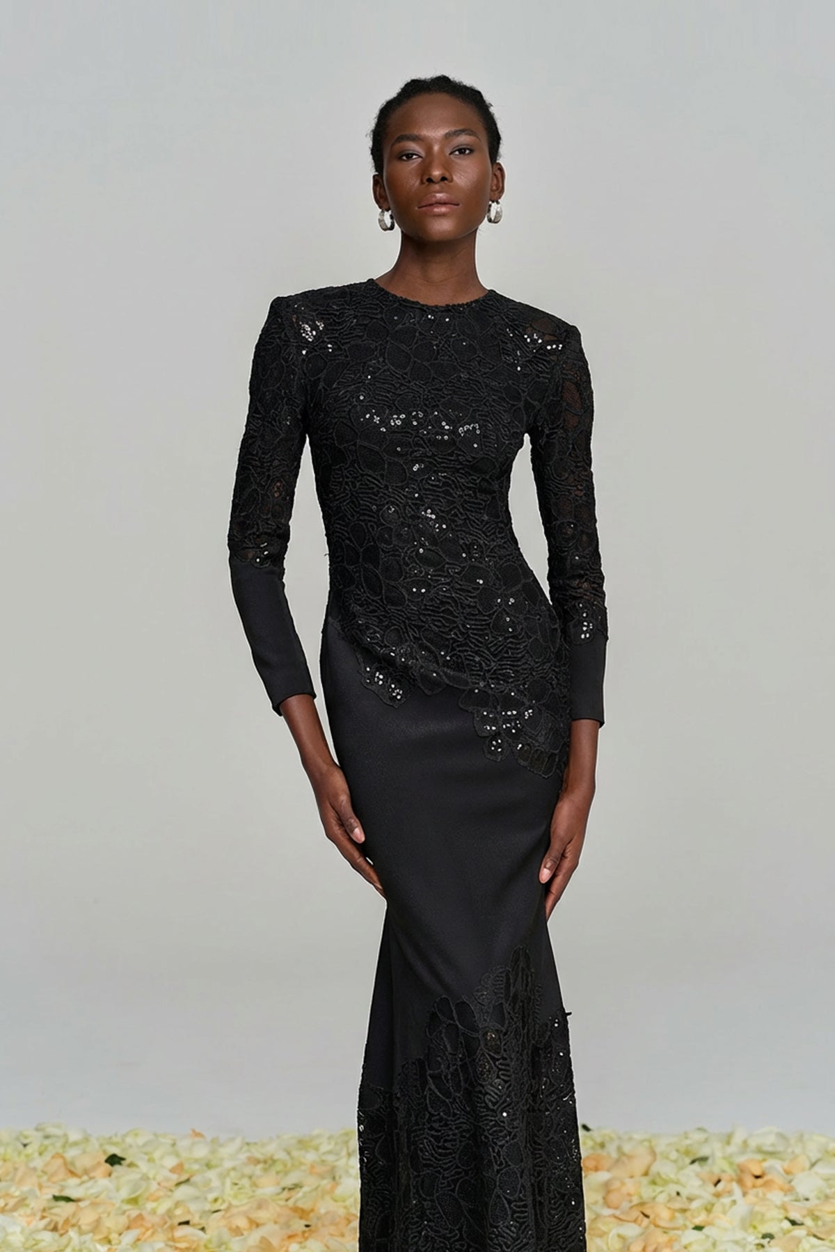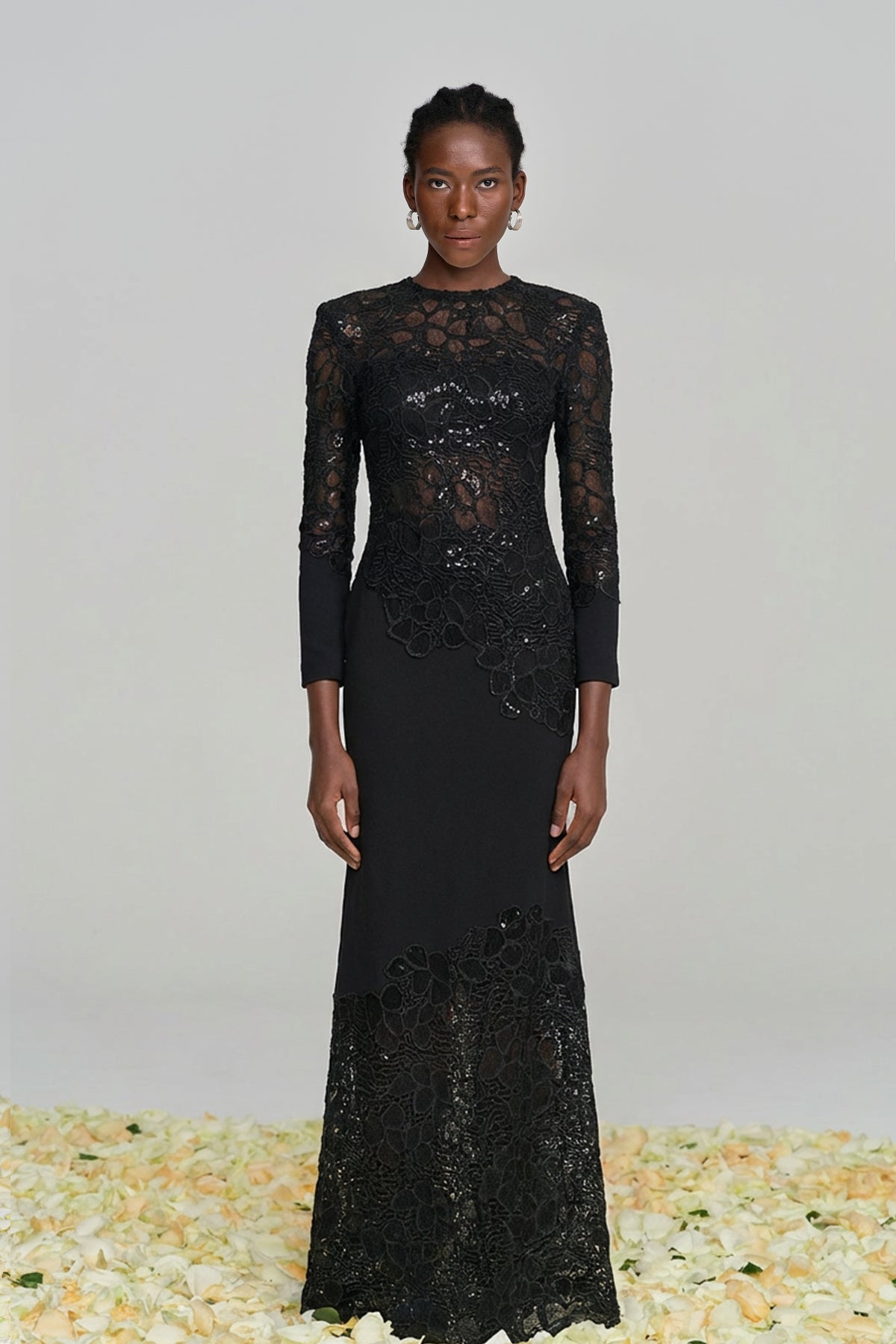 Ambroise Embroidered Sequin Maxi Dress In Black