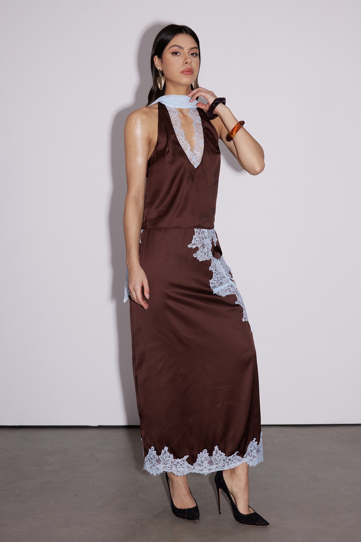 Bess Lace Asymmetric Skirt Set The Bess Lace Asymmetric Skirt Set combines refined elegance with contemporary design. Featuring delicate lace detailing and a strategically asymmetric hemline, this set delivers sophisticated movement and visual interest. The coordinated pieces work seamlessly together or separately, offering versatility for various occasions. Crafted with attention to detail, the lace construction provides texture while maintaining a polished aesthetic. Perfect for those seeking elevated everyday wear or occasion-ready styling.
