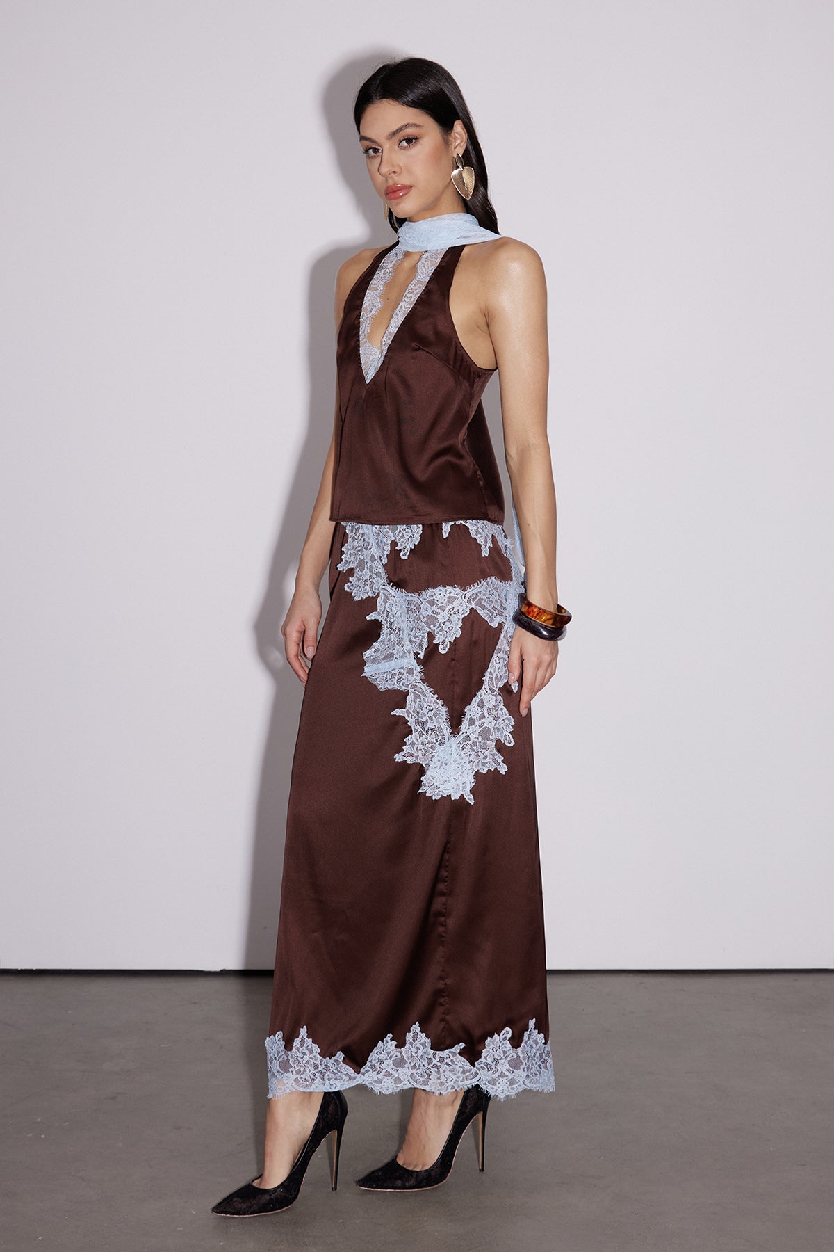 Bess Lace Asymmetric Skirt Set