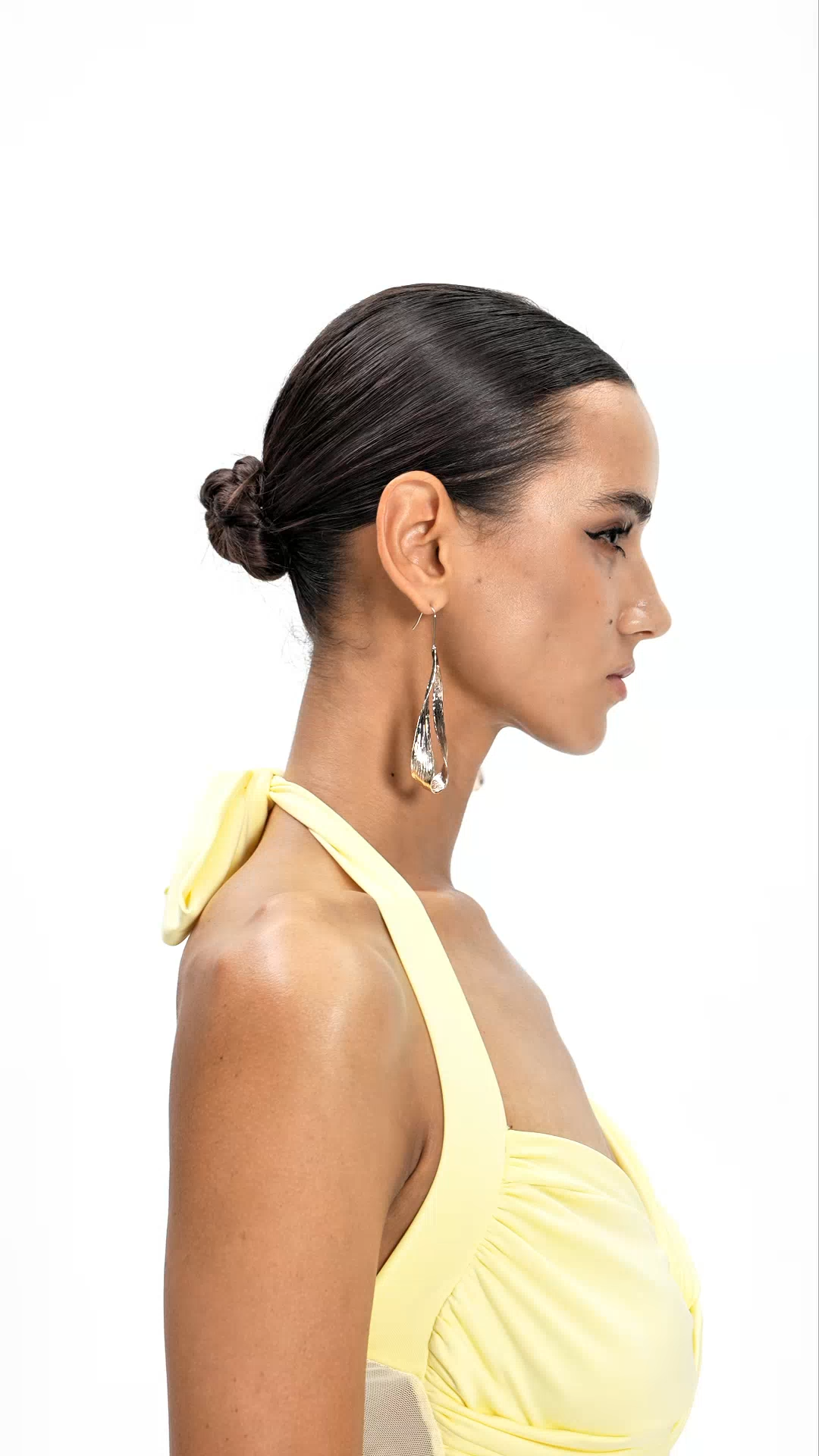The Cistimiru Halter Neck Tie Up Maxi Dress In Yellow showcases expert craftsmanship with its adjustable halter neckline for a personalized fit. Its flowing maxi silhouette offers elegance and freedom of movement, making it ideal for formal occasions or vibrant summer events. This dress combines striking color with refined design, delivering both comfort and a sophisticated presence.