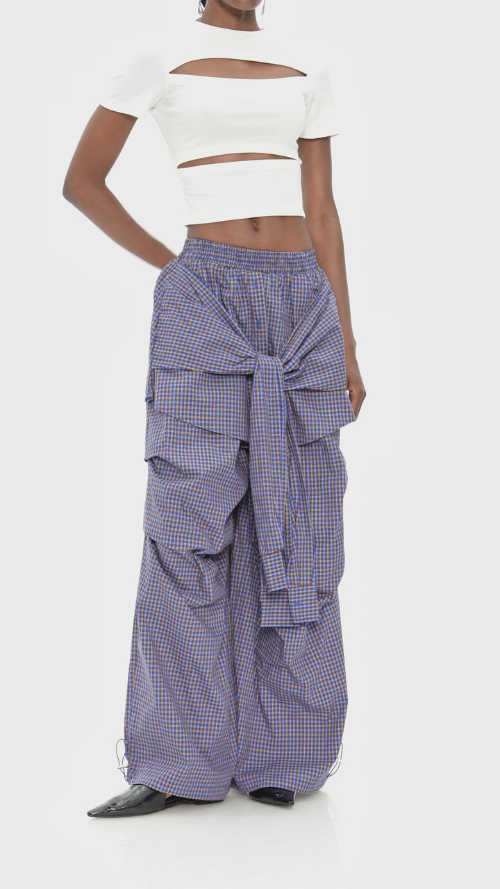 The Ctirad Grid Tie Up Pants combine precision tailoring with a modern grid pattern, offering a refined yet contemporary look. Designed with a comfortable tie-up waist, these pants provide customizable fit and support throughout the day. Crafted for versatility, they seamlessly transition from professional environments to casual outings, ensuring both style and functionality for the discerning wearer.