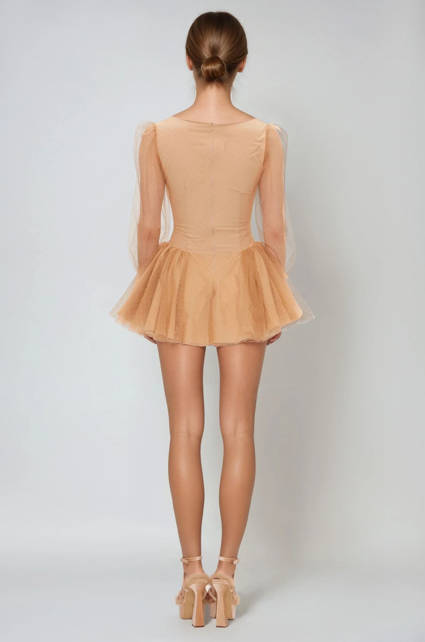 Danyal Flower Balloon Sleeve Mesh Mini Dress
