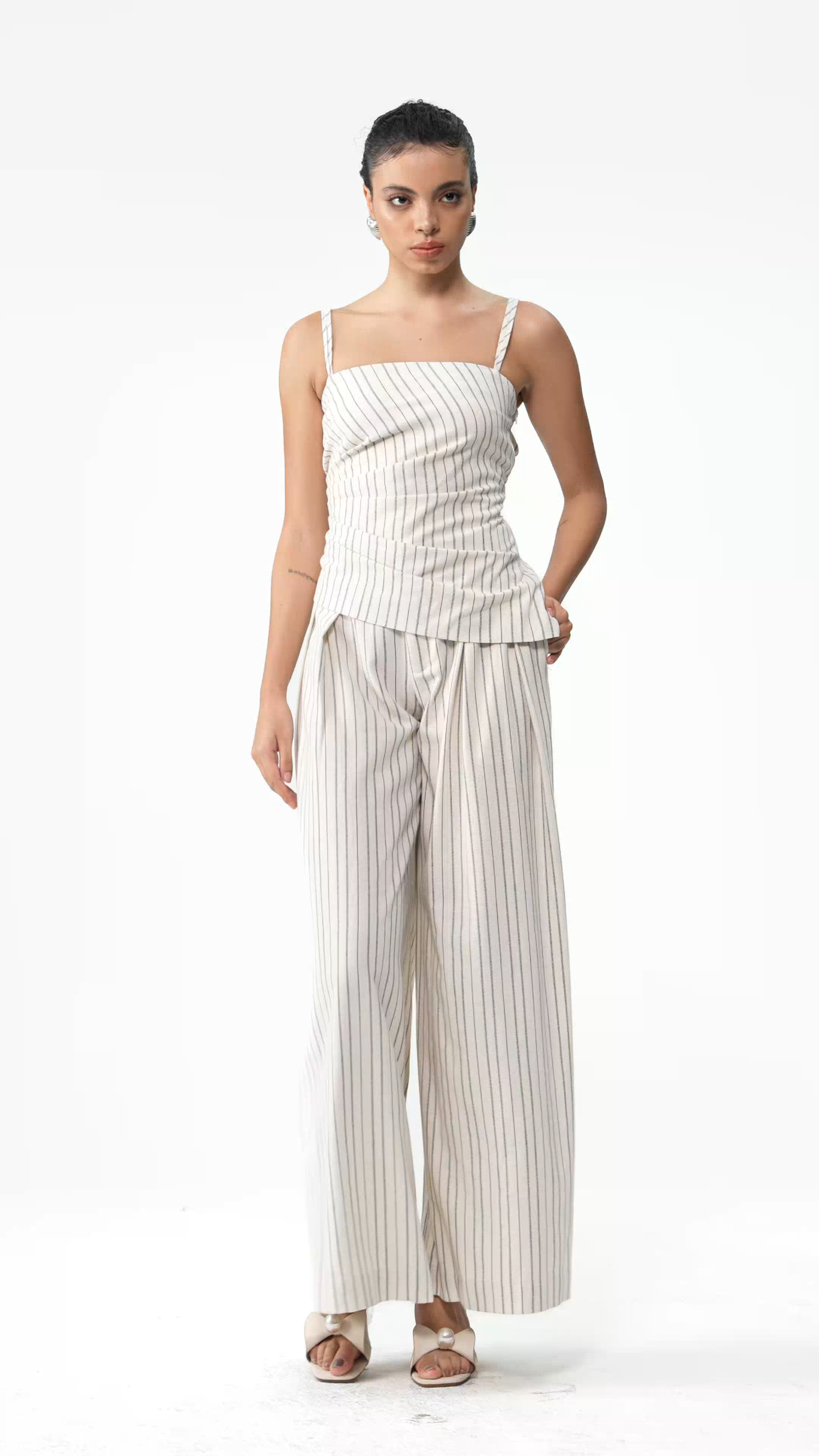 The Denag Spaghetti Stripe Pants Set offers a refined blend of comfort and contemporary style. Featuring lightweight, breathable fabric with a subtle striped pattern, it ensures elegance while providing ease of movement. The set’s tailored fit enhances silhouette definition, making it ideal for both casual and semi-formal occasions. Its versatile design allows effortless pairing with a variety of tops and accessories, making it a sophisticated addition to your wardrobe.