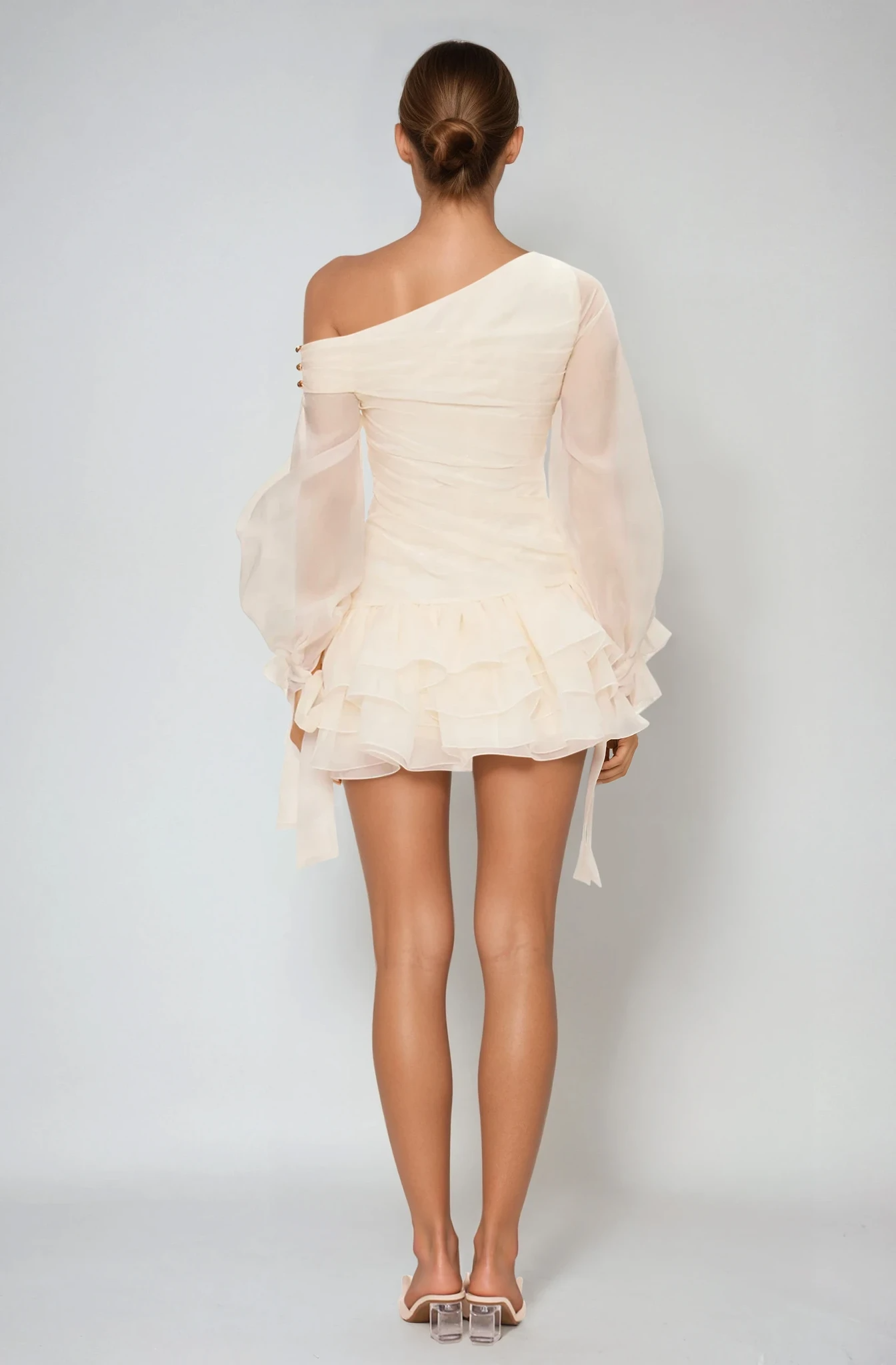 Deshaun Bow Asymmetric Puffy Mini Dress
