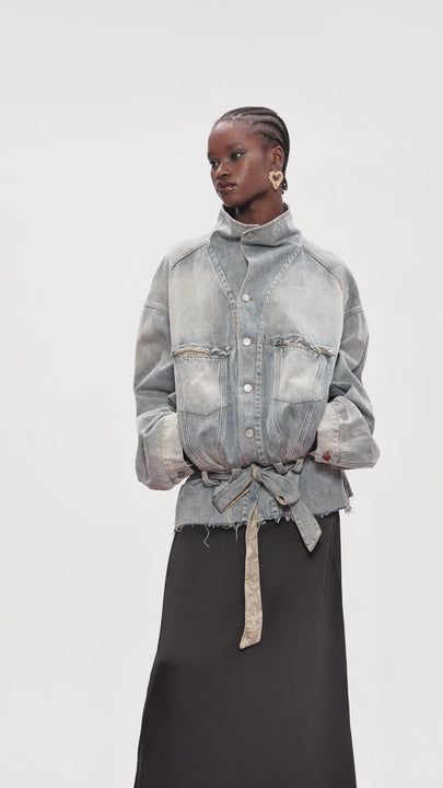 Dianna Tie Up Bleached Denim Jacket