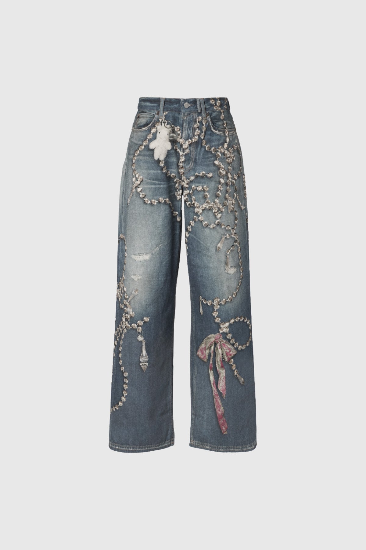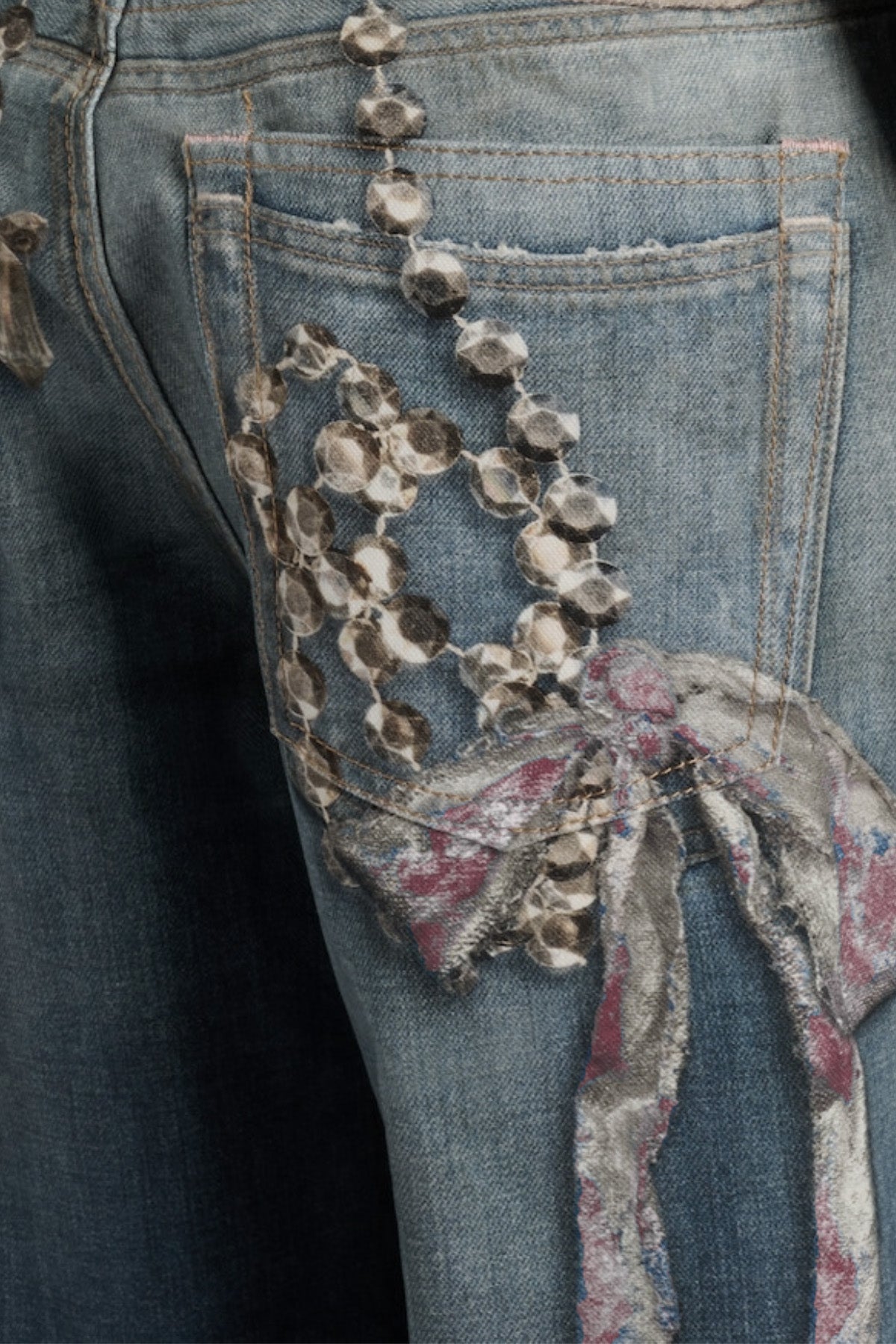 Dorrit Print Bleached Jeans In Light Blue The Dorrit Print Bleached Jeans deliver contemporary style with a distinctive aesthetic. Crafted in a light blue bleached finish, these jeans feature a unique print design that sets them apart from classic denim staples. The bleached treatment creates a vintage-inspired look while maintaining modern appeal, making them versatile for both casual and elevated styling. Ideal for those seeking statement-making denim with character and individuality.