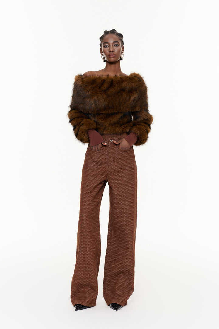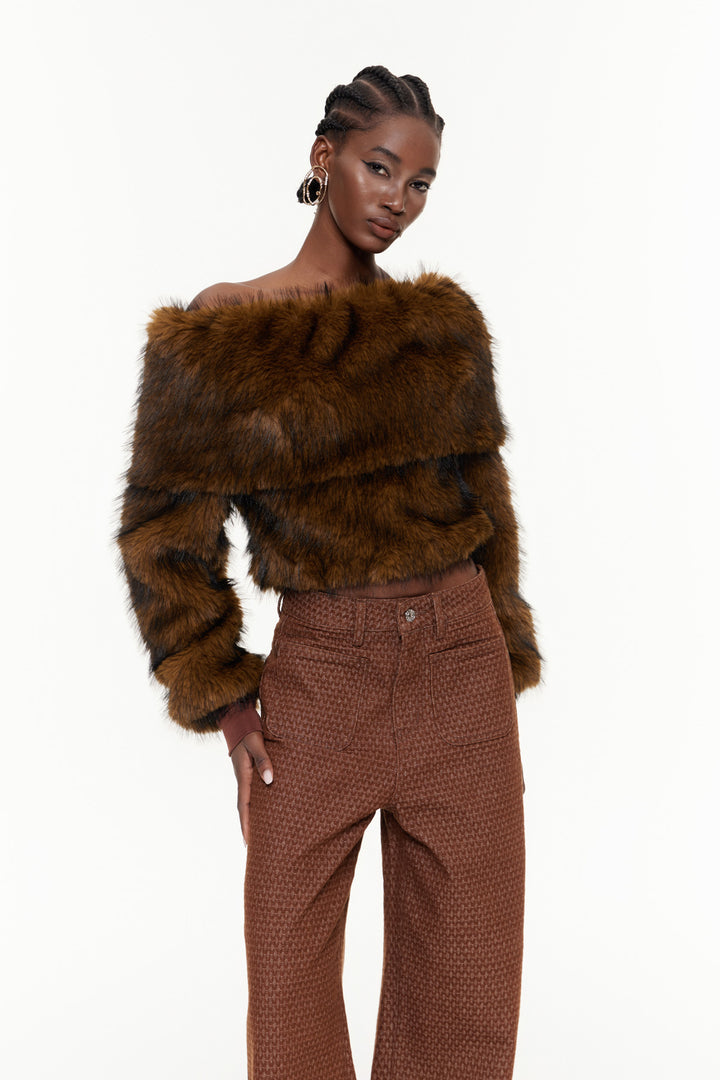 Elevate your evening wardrobe with the Ehmet Off Shoulder Faux Fur Top, a sophisticated piece that seamlessly blends contemporary design with timeless elegance. The striking off-shoulder silhouette frames the neckline beautifully, while luxurious faux fur detailing adds texture and visual interest. Crafted for those who appreciate refined style, this top transitions effortlessly from cocktail events to upscale gatherings. The faux fur construction offers a cruelty-free alternative without compromising on the glamorous aesthetic. Perfect for layering or wearing as a statement piece, the Ehmet top delivers versatile sophistication for the discerning dresser.