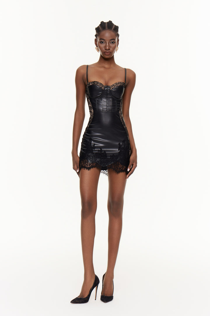 Eileithyia Lace Corset Leather Mini Dress