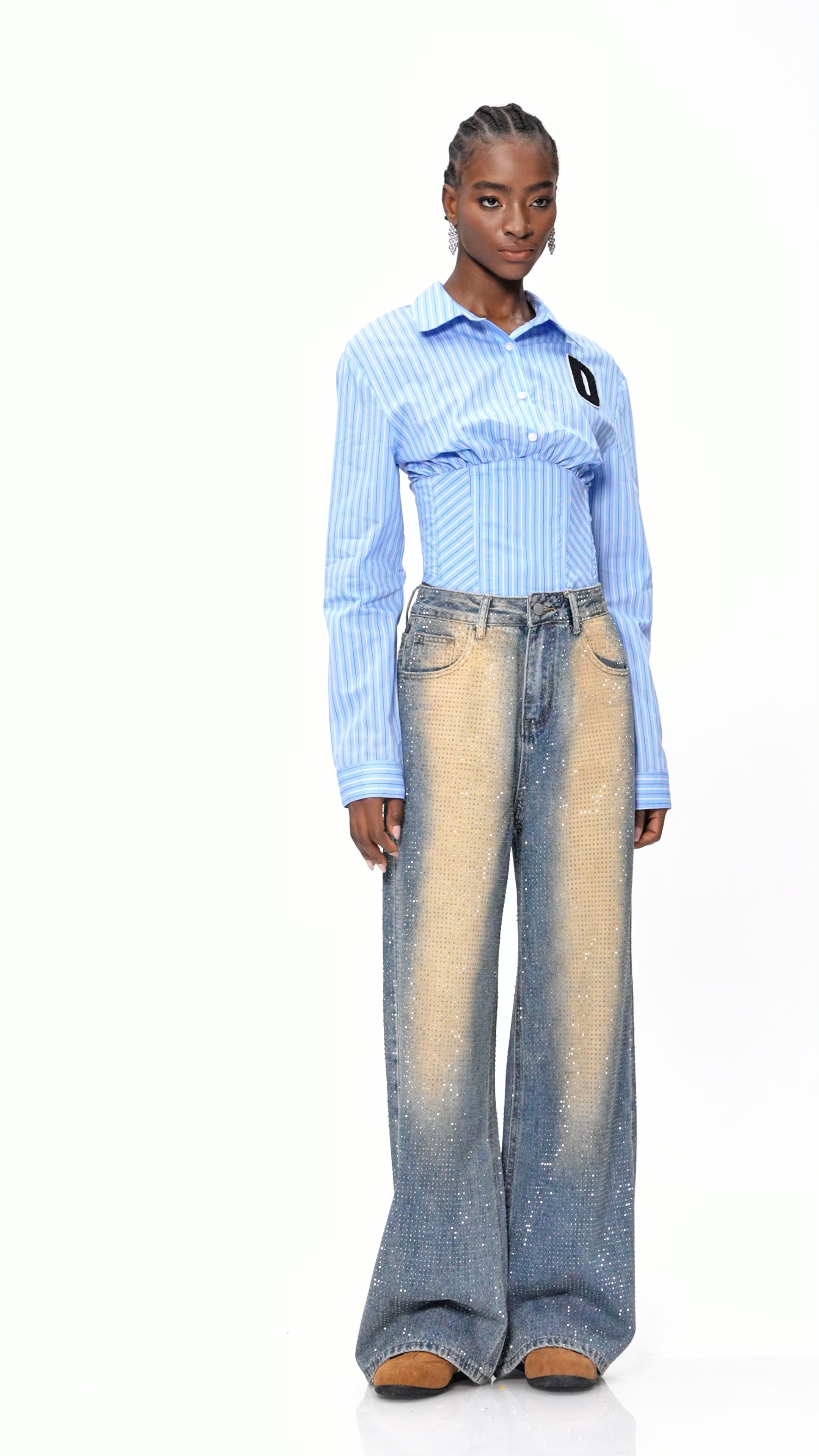 Elevate your style with Engratia Rhinestone Wide Leg Jeans, blending modern sophistication and glamour. Featuring sparkling rhinestone embellishments and a flattering wide leg silhouette, these jeans offer a striking upgrade to your wardrobe for any occasion.