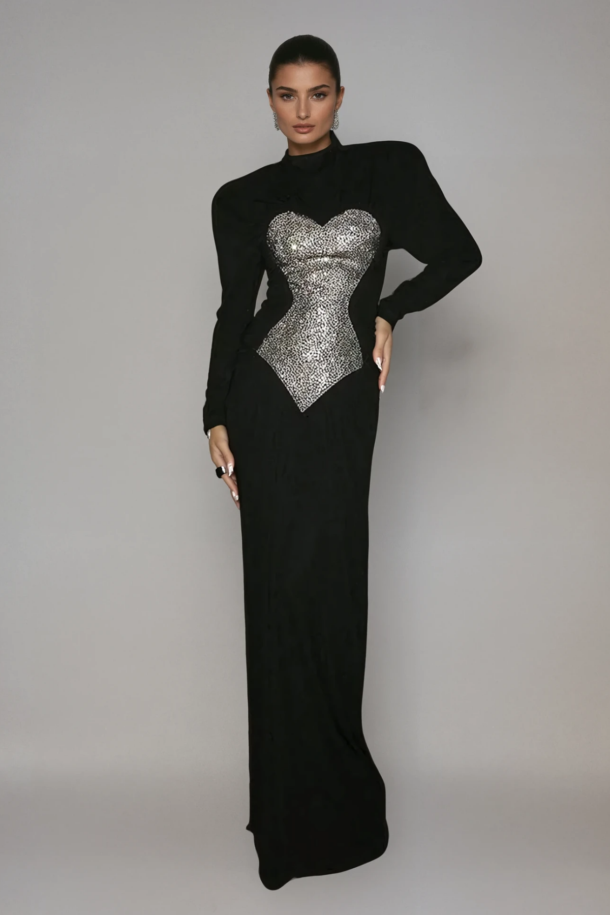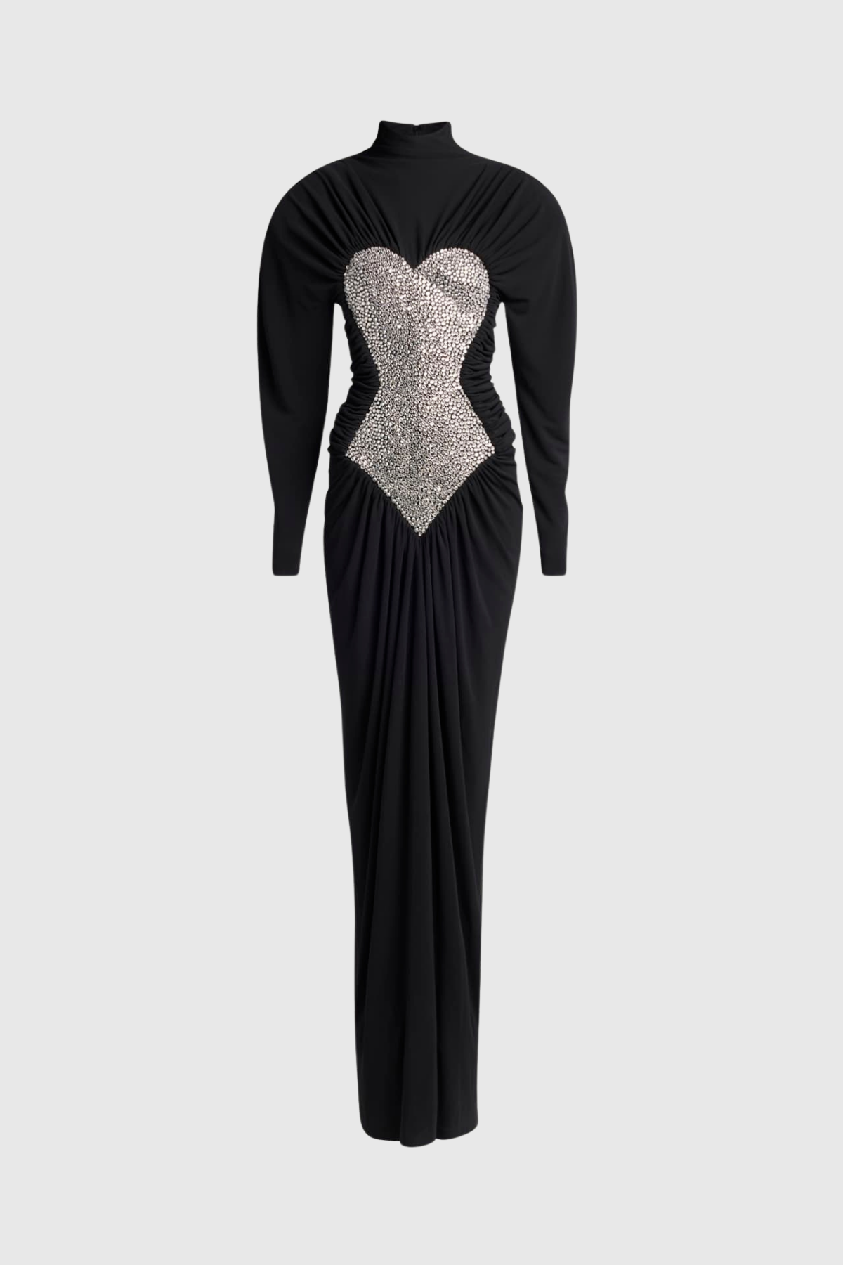 Fahmida Rhinestone Bodycon Maxi Dress Engineered for sophisticated elegance, this bodycon maxi dress features strategically placed rhinestone embellishments that catch light with every movement. The form-fitting silhouette sculpts the body while the floor-length cut delivers timeless refinement. Premium fabric construction ensures a smooth, flattering drape that maintains its shape throughout wear. Perfect for evening events, galas, or upscale occasions where understated glamour makes the strongest statement. The rhinestone detailing adds dimension without overwhelming the design, creating a polished look that transcends seasonal trends.