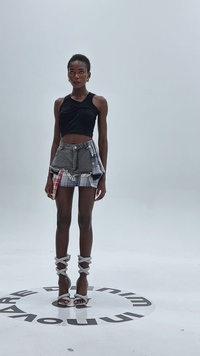 Kenna Grid Deconstruct Patchwork Mini Skirt In Black