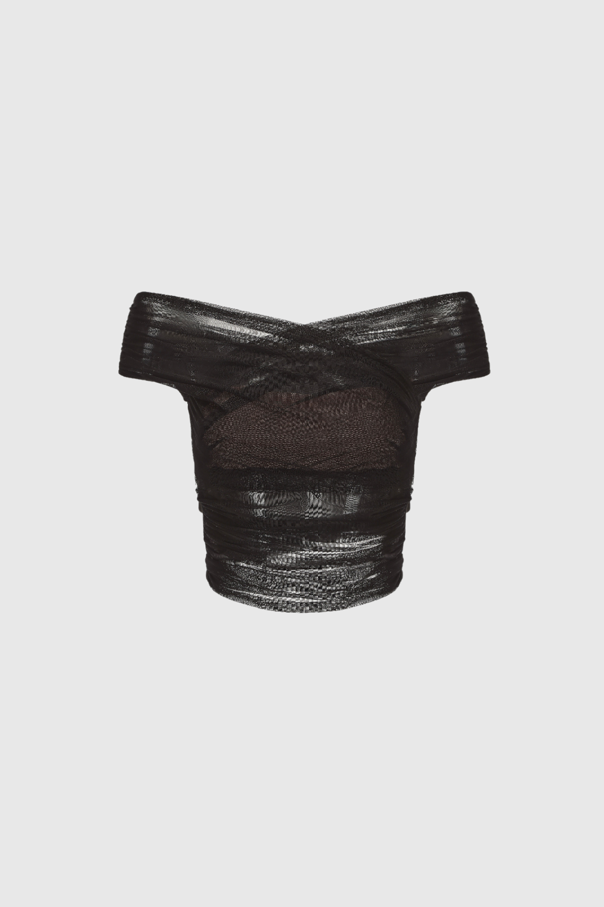 Alusia Off Shoulder Ruch Mesh Top In Black