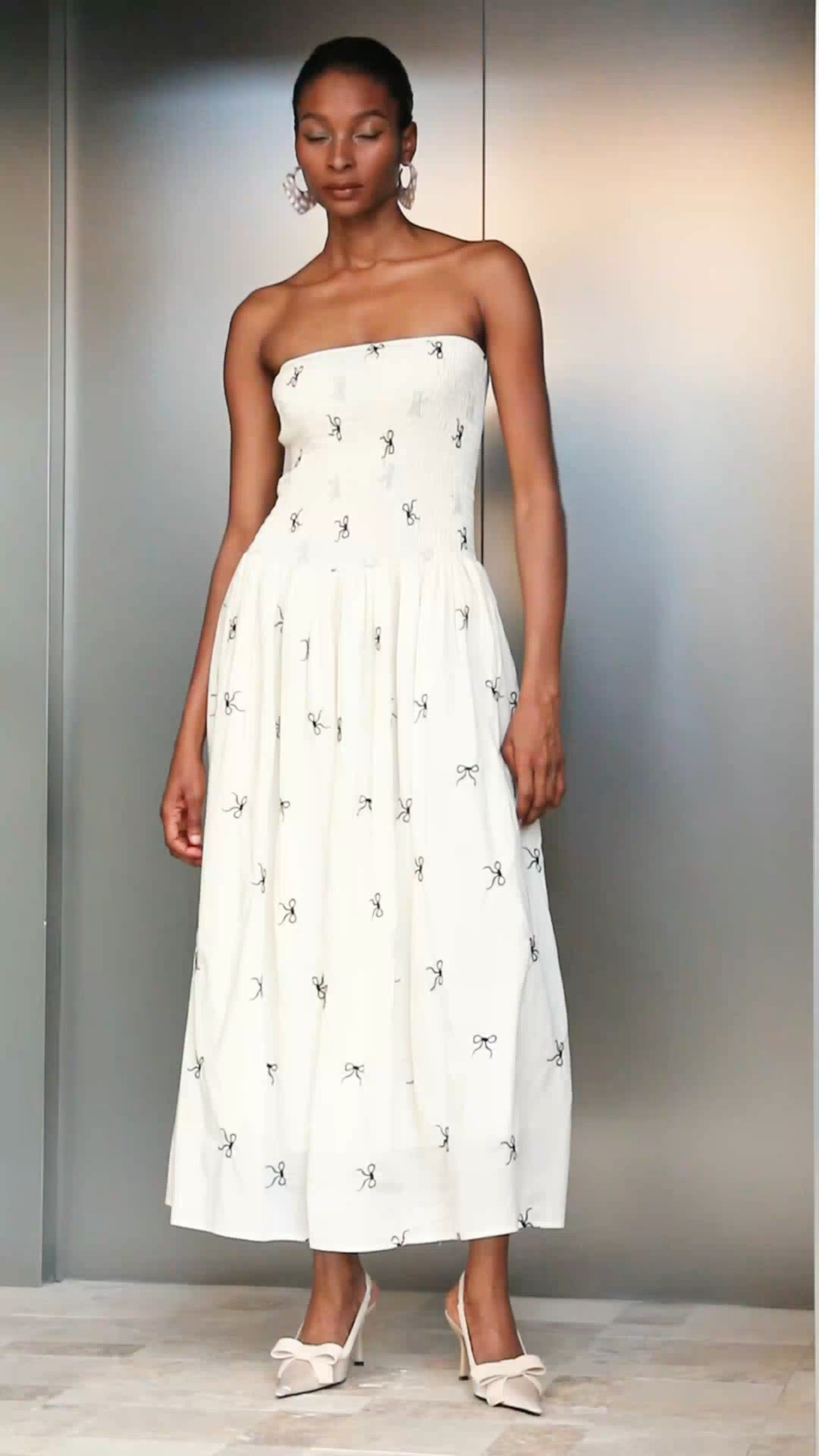 The Caterina Strapless Bow Ruffle Maxi Dress combines elegant design with expert tailoring. Featuring a strapless neckline and a prominent bow detail, this maxi dress offers a refined silhouette that flatters the shoulders and décolletage. The cascading ruffles add movement and texture, enhancing its sophisticated appeal. Ideal for formal occasions, this dress balances classic charm with contemporary style, ensuring a confident and polished look.