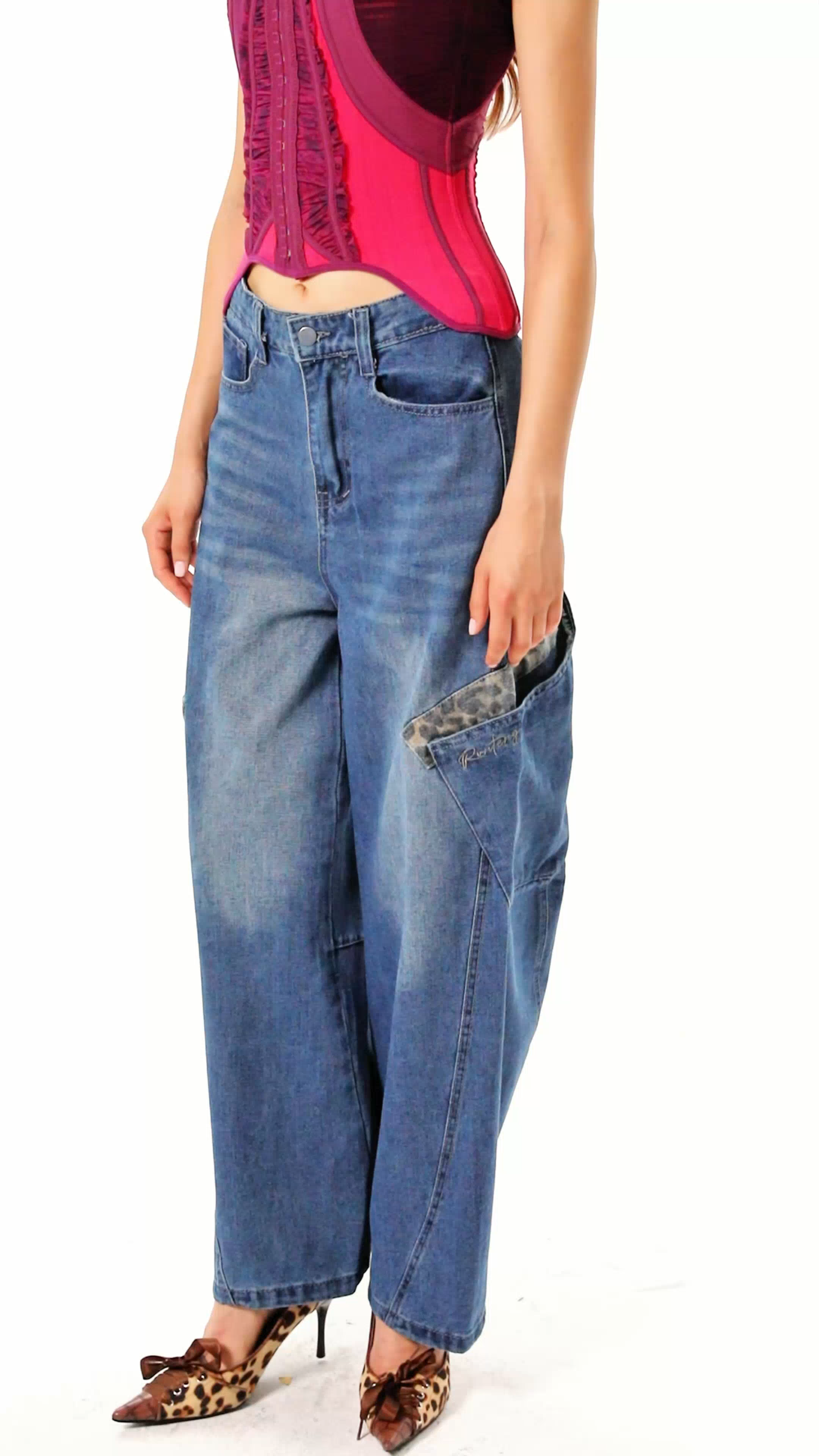 The Chayyim Leopard Pocket Baggy Jeans combine bold leopard detailing with a relaxed fit for a statement look without compromising comfort. Designed with spacious pockets, these jeans offer practical storage while the baggy silhouette allows freedom of movement. Crafted for style-conscious wearers, they balance edgy patterns with casual ease, making them a versatile addition to contemporary wardrobes.