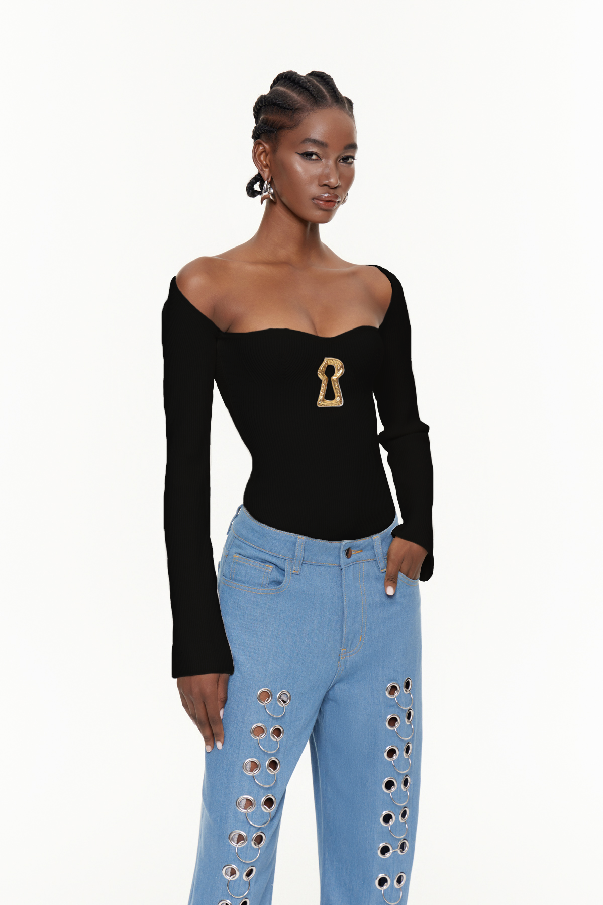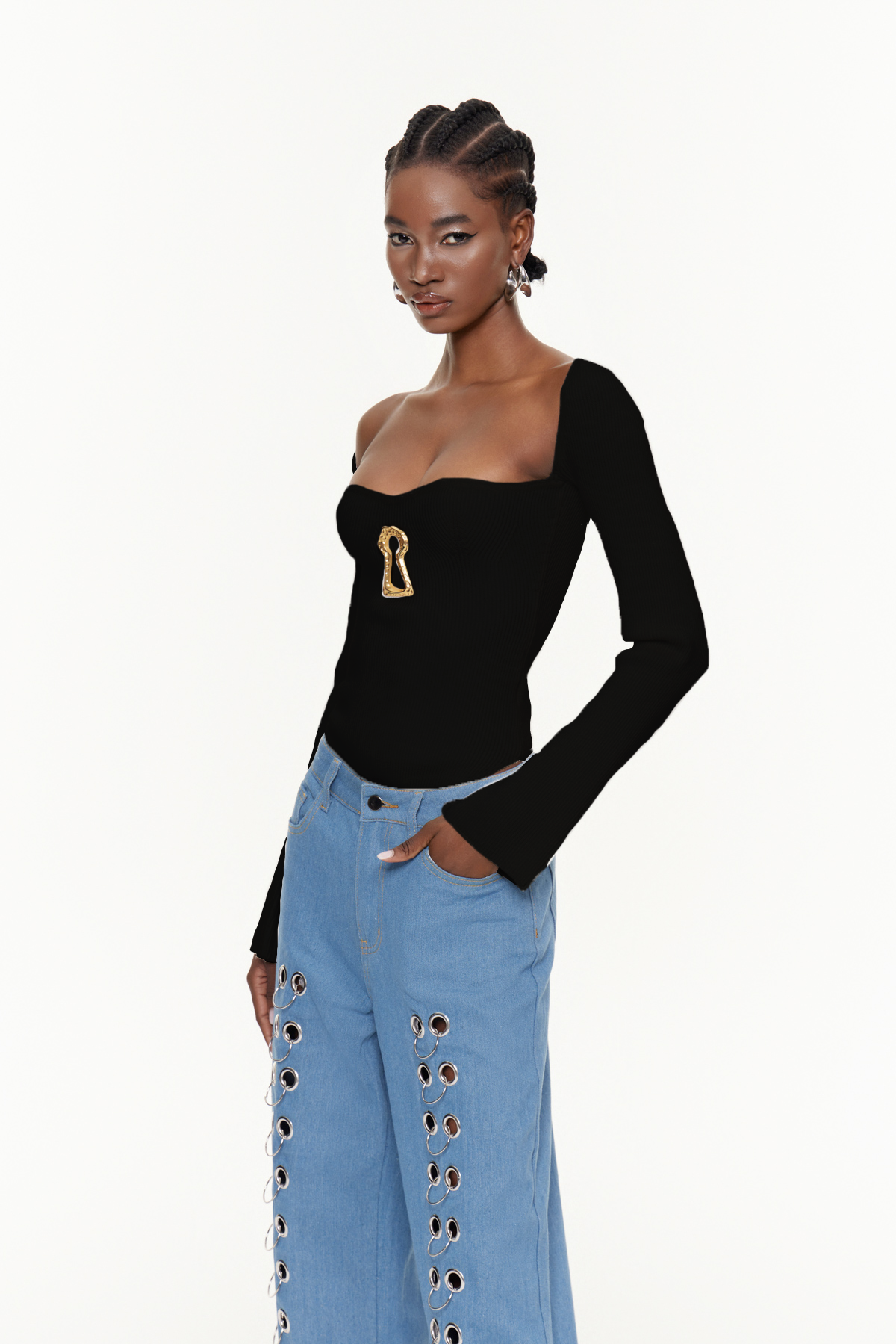 Cindi Long Sleeve Bodycon Knit Top In Black