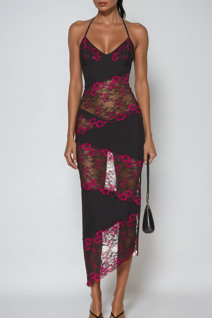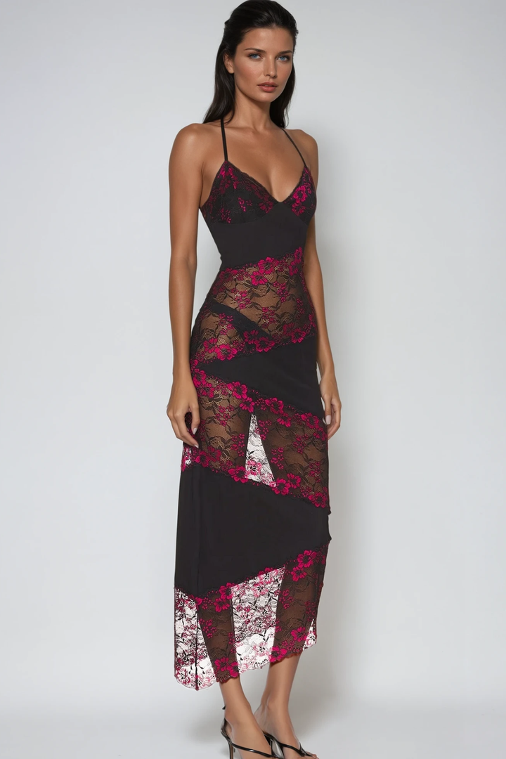 Diederik's deconstructed approach to classic femininity reimagines the floral lace maxi through strategic layering and asymmetrical cuts. Sheer lace panels reveal unexpected silhouettes beneath, while the floor-length hem maintains an elegant drape. This piece balances avant-garde design with wearable sophistication, offering a statement option for those seeking refined individuality in their wardrobe.