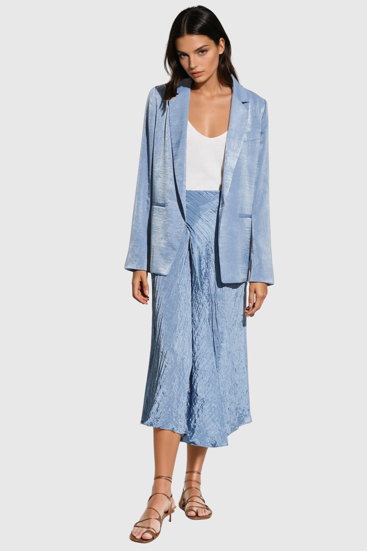 The Faye Asymmetric Ruch Midi Skirt combines contemporary design with refined elegance. Its signature asymmetric ruching creates dynamic visual interest while flattering the silhouette, while the midi length offers versatile styling for both professional and casual occasions. Crafted with attention to detail, this piece transitions seamlessly from day to evening wear, making it an essential addition to any sophisticated wardrobe.