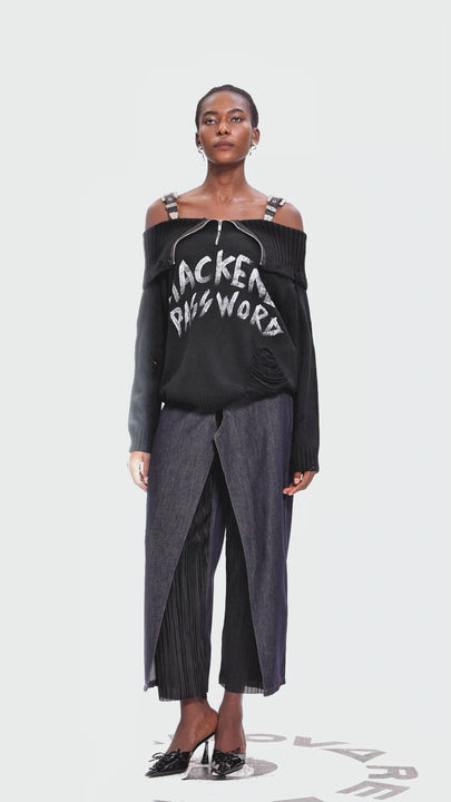 The Chaggit Deconstruct Skirt Pants blend innovative design with expert tailoring, offering a unique fusion of skirt and pants for versatile styling. Crafted with precision, these pants provide both comfort and a contemporary edge, making them ideal for fashion-forward individuals seeking a statement piece that balances structure and fluidity. Perfect for elevating your wardrobe with a sophisticated yet unconventional silhouette.