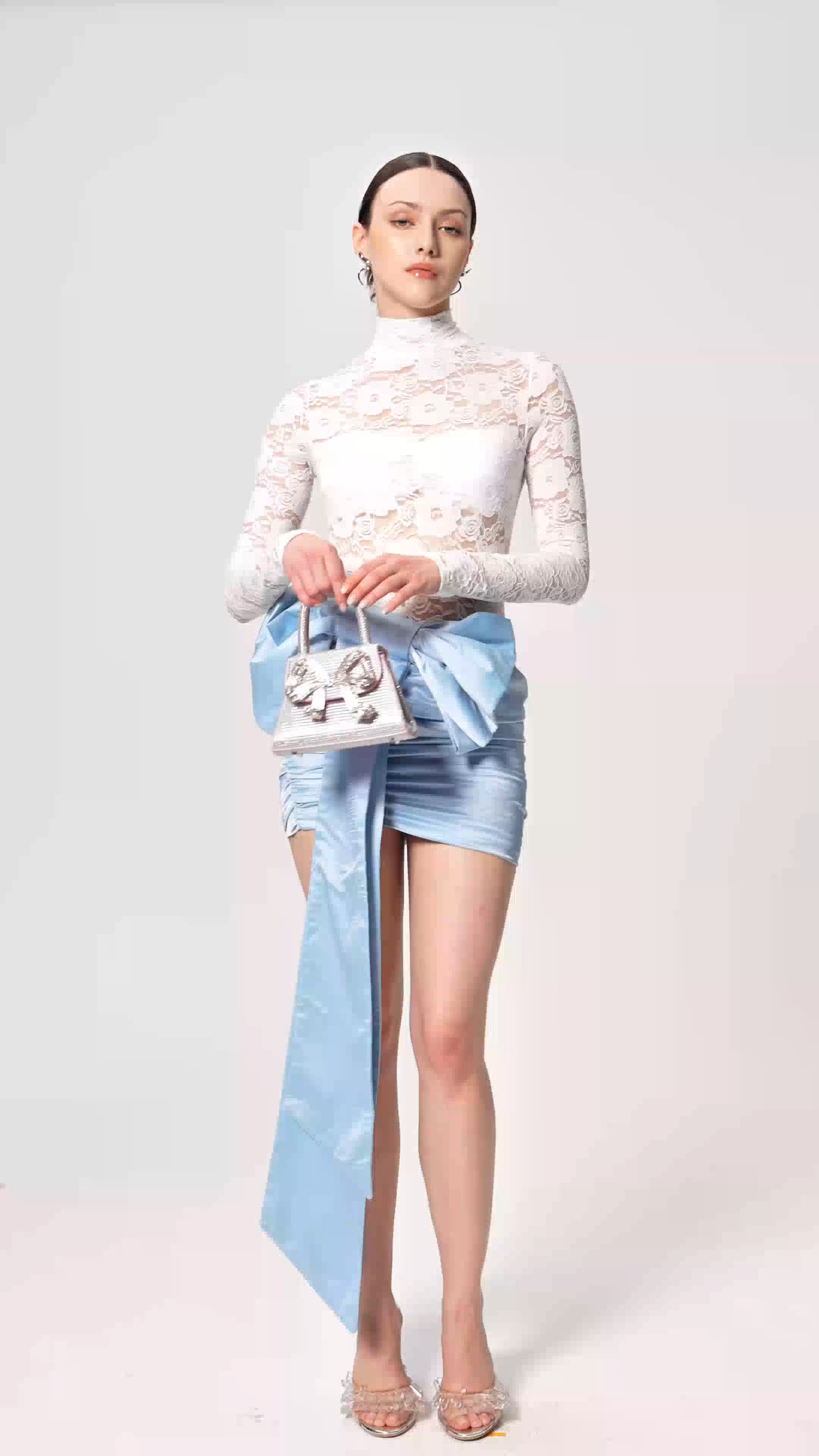 Elevate your evening wardrobe with the Clarence Lace Bow Satin Mini Dress. This expertly crafted piece pairs smooth satin fabric with delicate lace accents, creating a sophisticated yet playful silhouette. The statement bow detail adds an elegant touch, while the mini length highlights your legs for a chic and confident look. Perfect for formal events or stylish nights out, this dress combines refined design and flattering fit to ensure you make a lasting impression.