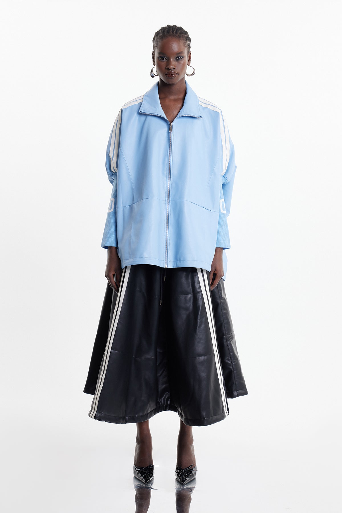 The Condoleezza Stripe Leather Jacket in Blue delivers understated elegance through superior materials and design. Constructed from genuine leather, this jacket showcases refined striping that adds textural interest without compromising sophistication. The deep blue shade provides a versatile foundation for layering, working seamlessly with both minimalist and bold styling approaches. The precision-tailored fit ensures a flattering drape across various body types. Engineered for longevity, this piece represents a smart investment in quality outerwear that transcends seasonal trends and maintains its appeal year after year.