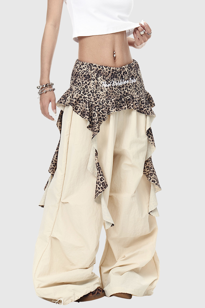 Deepak Leopard Ruffle Deconstruct Pants In Apricot