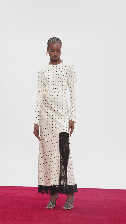 Elevate your evening wardrobe with this sophisticated Devonte maxi dress, featuring an intricate dot flower lace overlay in pristine white. The flowing silhouette drapes elegantly to the floor, creating a graceful, elongated line that flatters all figures. Crafted with premium lace detailing, this piece transitions seamlessly from formal events to upscale occasions. The timeless white palette pairs effortlessly with statement jewelry and classic heels, while the refined lace construction ensures you'll make a memorable impression. A versatile investment piece that embodies understated luxury and contemporary elegance.