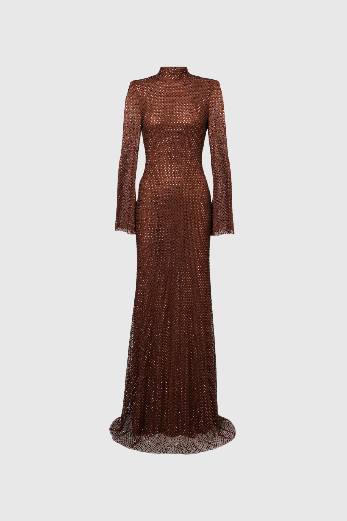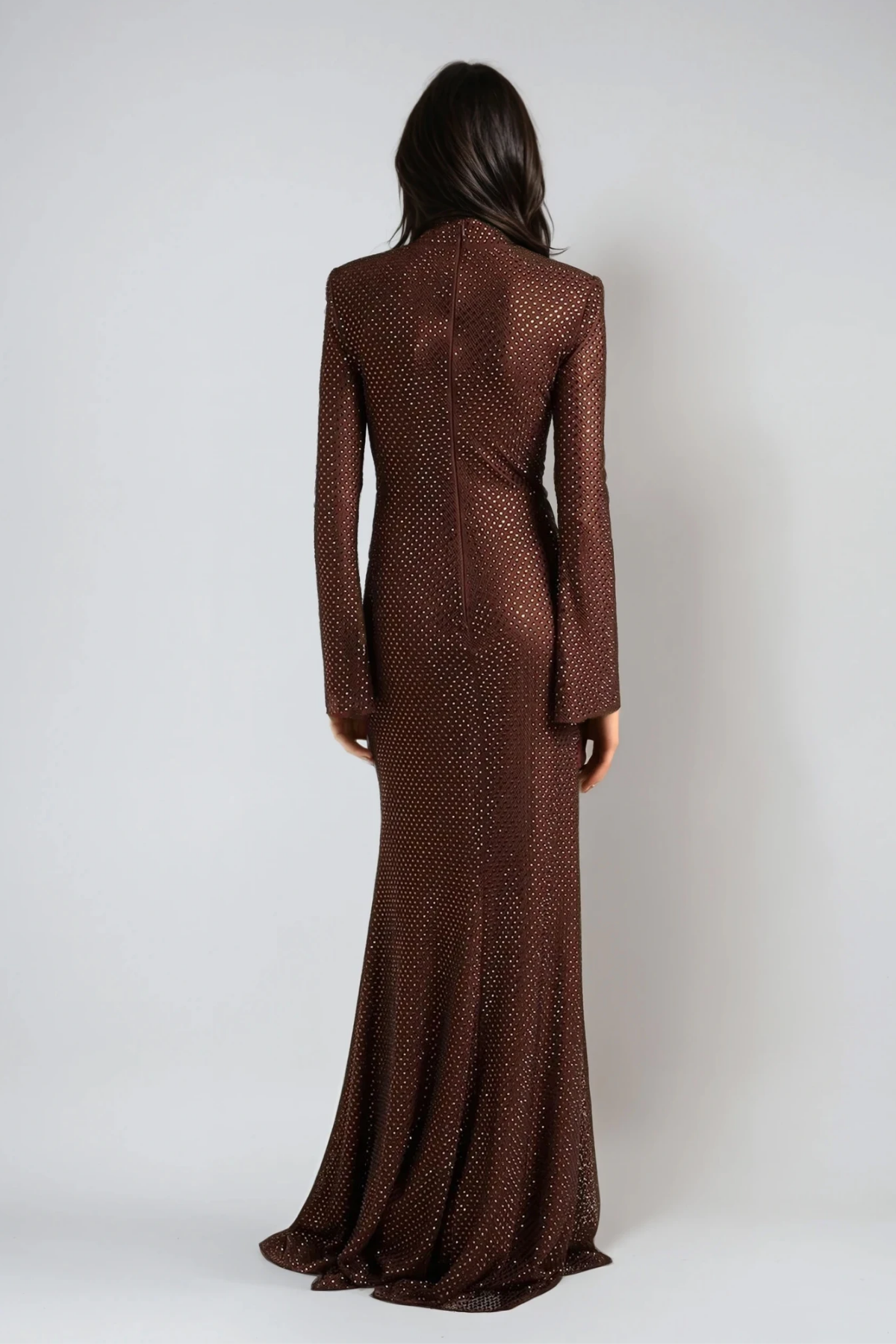 Elevate your evening wardrobe with the Dipali High Neck Rhinestone Maxi Dress, a sophisticated choice for those who appreciate refined elegance. This floor-length silhouette features a commanding high neckline that frames the face beautifully, while intricate rhinestone embellishments catch the light with every movement, creating an understated yet captivating sparkle. The maxi cut offers graceful draping and comfortable movement, making it ideal for formal events, galas, or upscale celebrations. Crafted with attention to detail, this dress combines timeless design with contemporary glamour, ensuring you make a memorable impression.