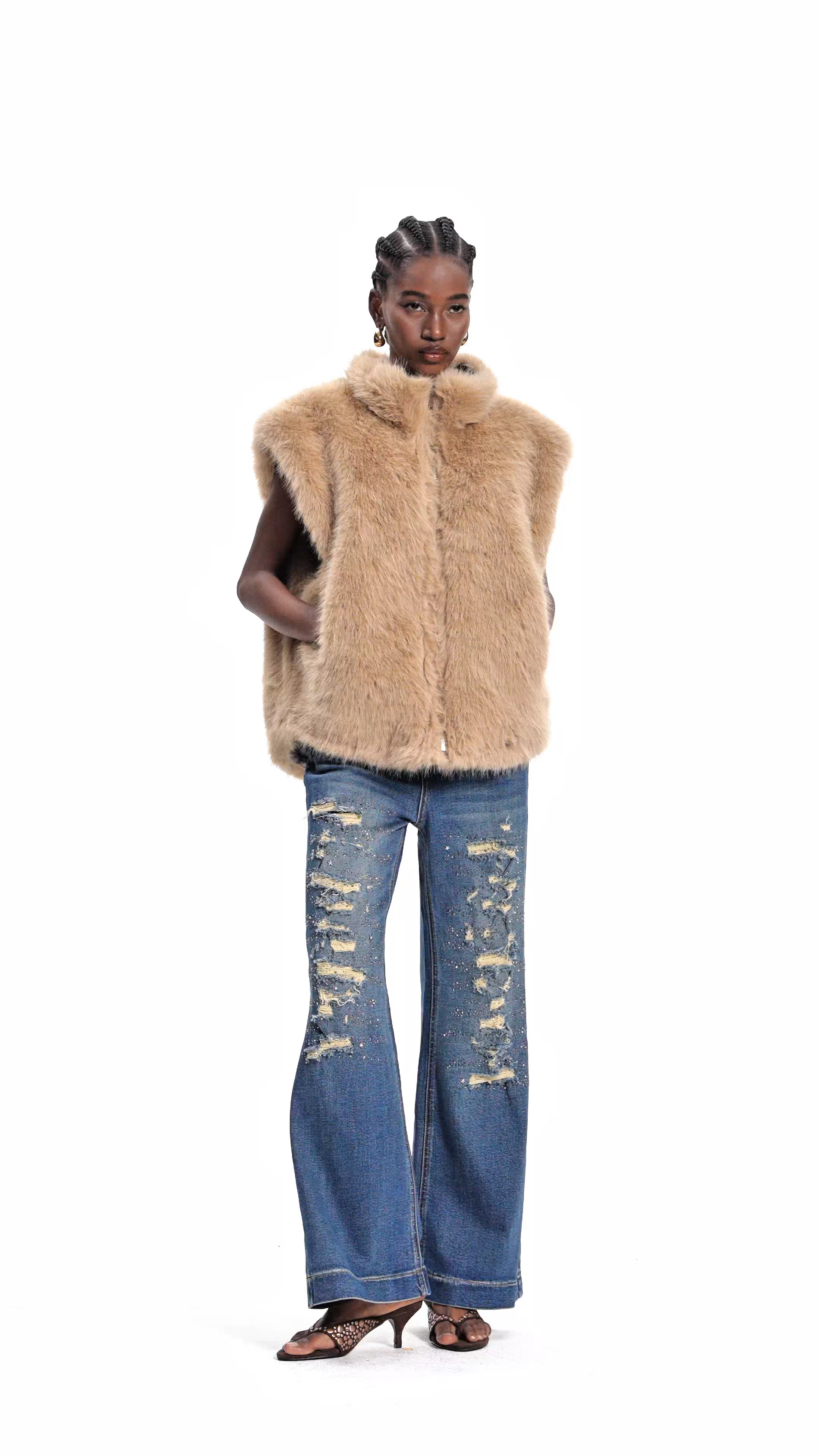 Edwina Faux Fur Grid Vest The Edwina Faux Fur Grid Vest combines luxurious texture with contemporary design. Crafted from premium faux fur with a distinctive grid pattern, this versatile layering piece elevates any ensemble. The soft, plush construction provides warmth without bulk, while the structured grid detailing adds visual interest and dimension. Perfect for transitional seasons, this vest pairs effortlessly over sweaters, dresses, or casual basics. An investment piece that delivers both comfort and sophisticated style.
