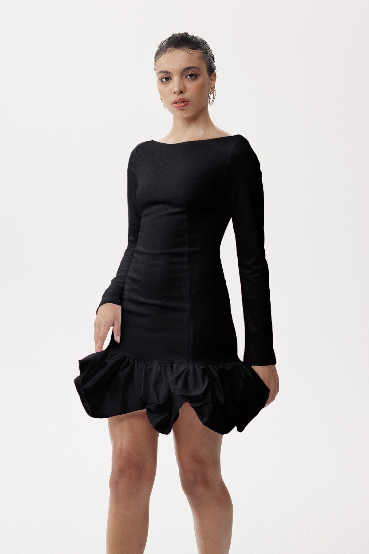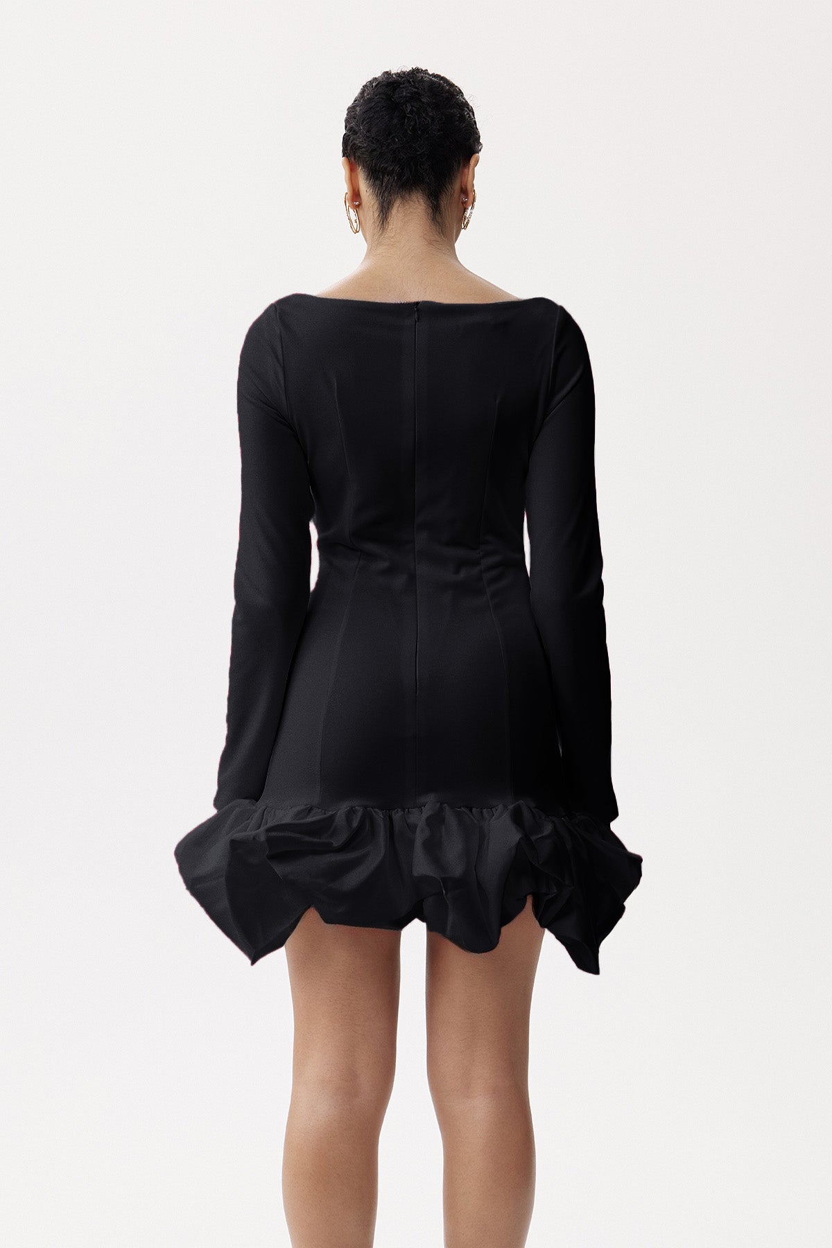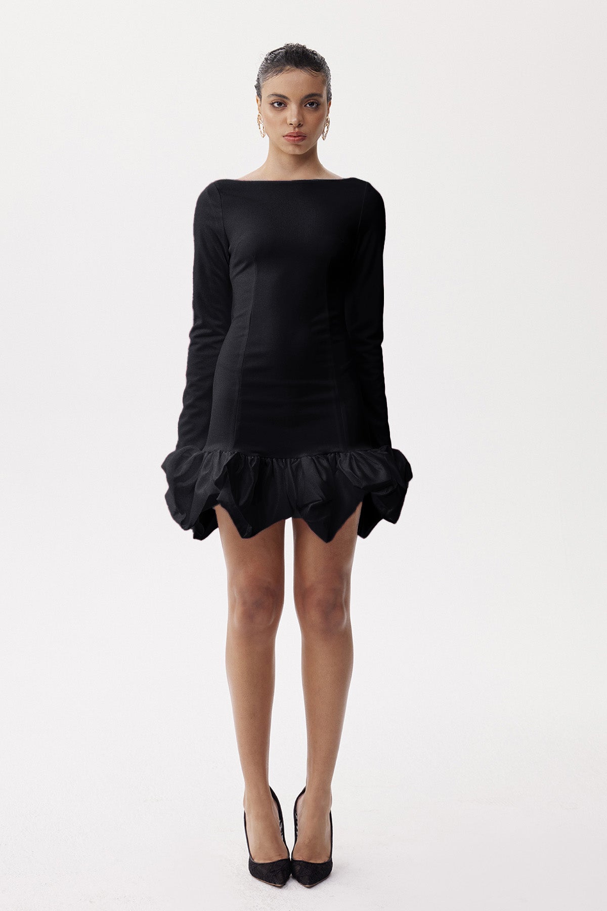 The Eleonor Ruch Drop Waist Mini Dress in Black exemplifies understated luxury through precision tailoring. Featuring a distinctive drop waist with carefully engineered ruching, this design creates dimensional shaping that enhances natural proportions. The timeless black colorway ensures exceptional versatility, pairing effortlessly with statement accessories or layered pieces. The mini silhouette balances contemporary proportion with refined construction, while the structured waist detail provides visual interest and flattering contouring. A wardrobe essential that transcends seasonal trends and occasions.
