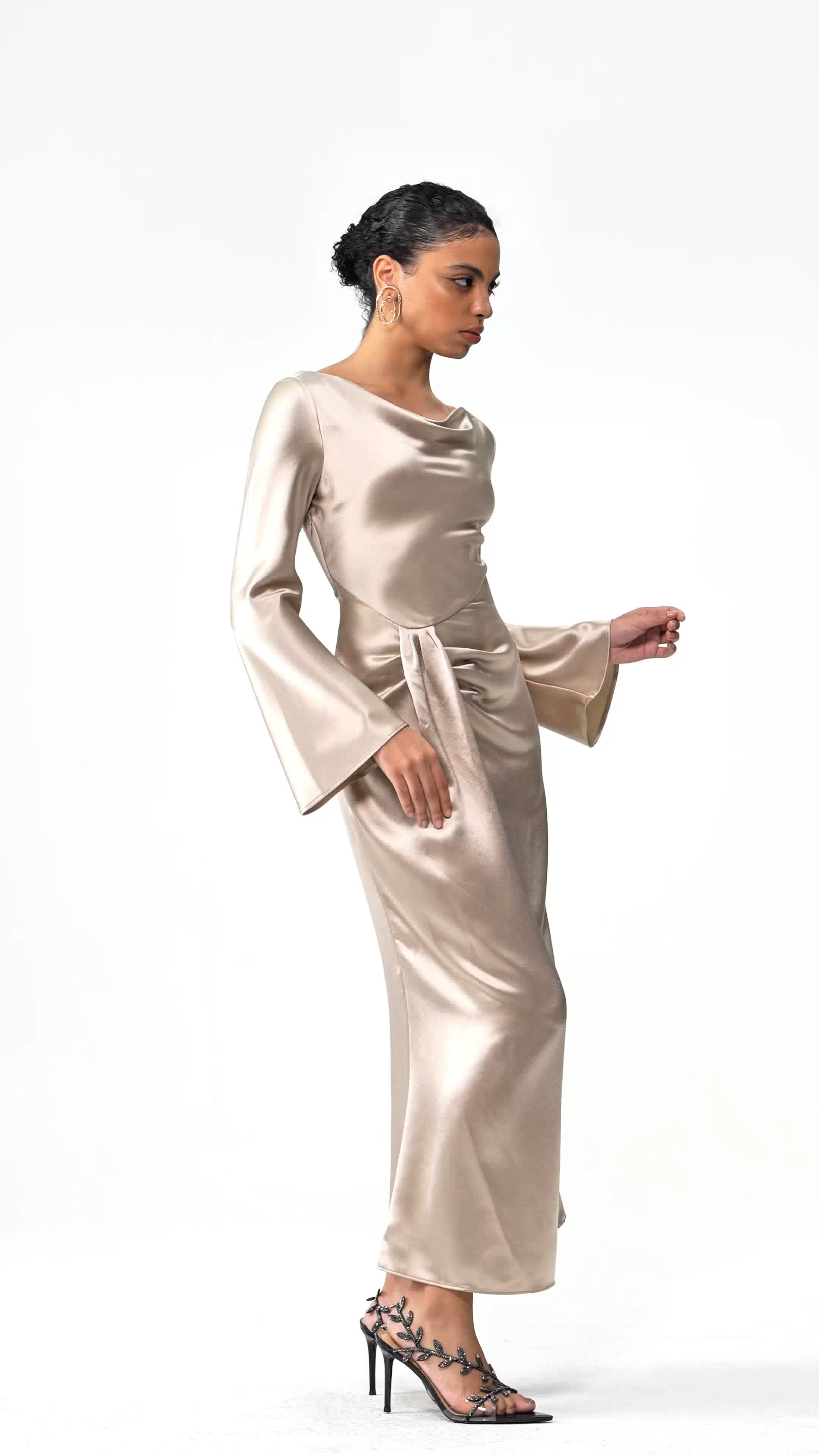 Eleonora Asymmetric Ruch Satin Maxi Dress