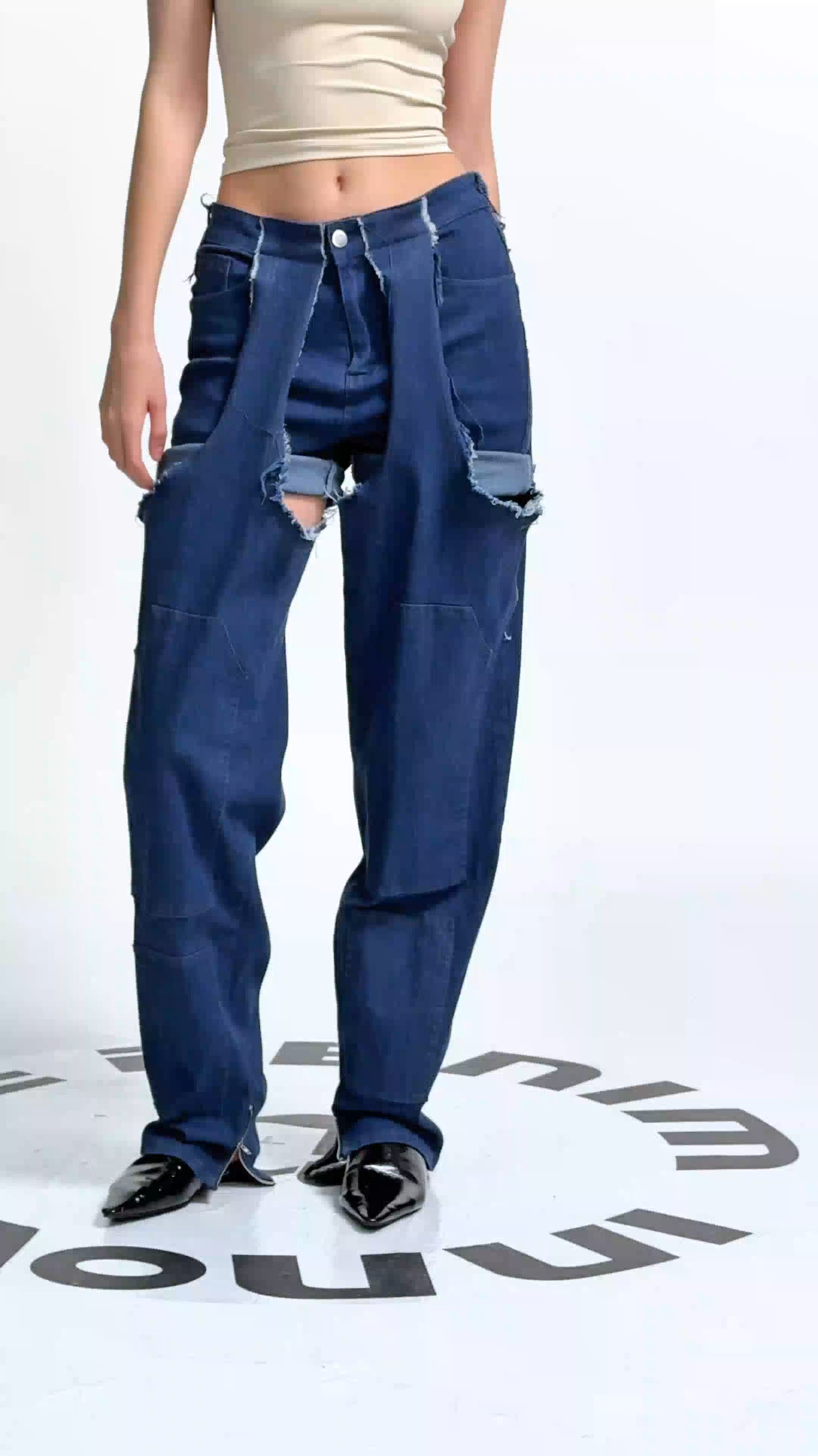 Update your wardrobe with our Anahi Deconstruct Asymmetric Fringe Jeans In Dark Wash. The unique asymmetric fringe design adds a touch of style to your outfit. Made with high-quality denim, these jeans offer a comfortable fit and will elevate your fashion game. Upgrade to these jeans and stand out from the crowd.