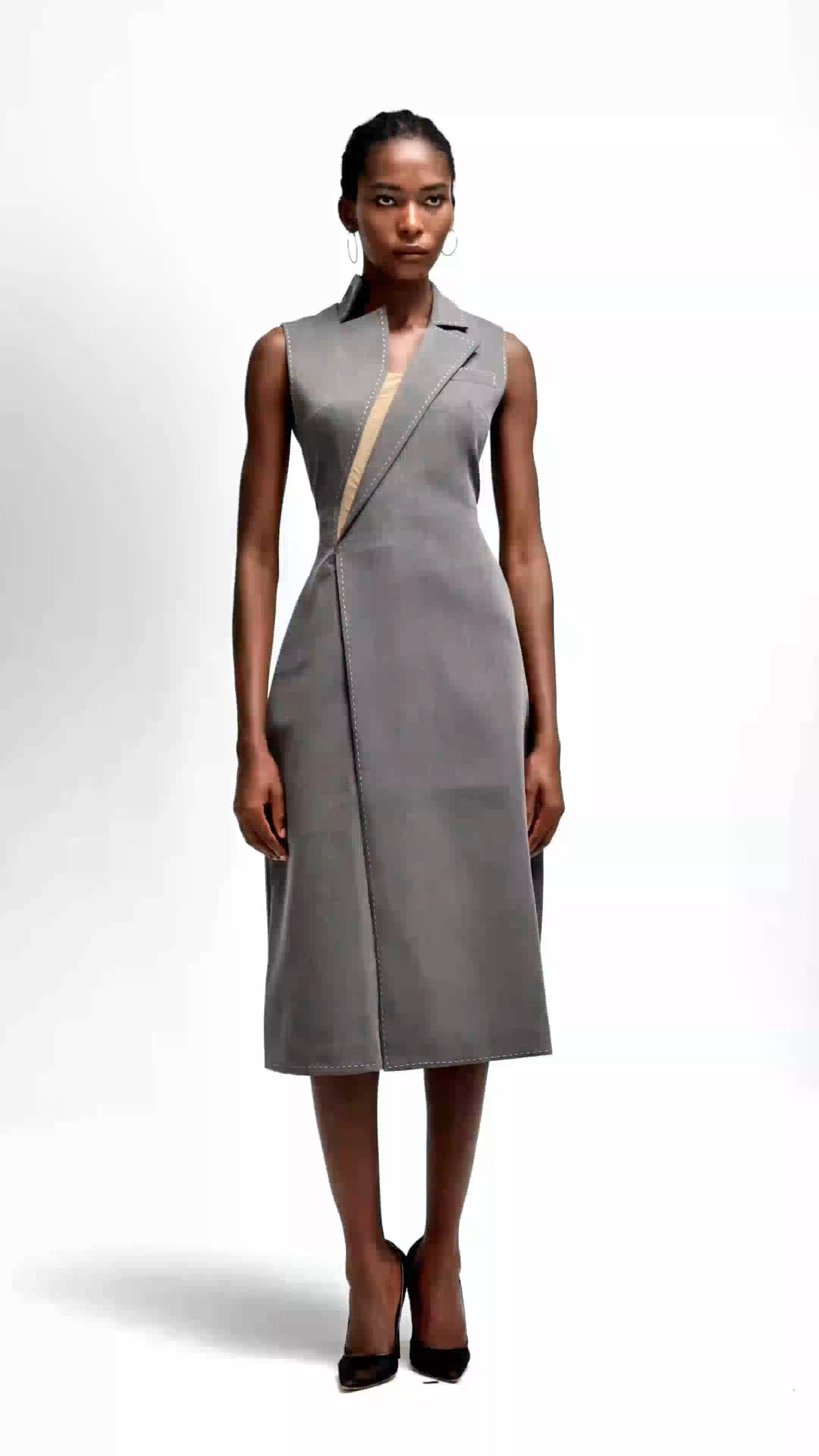 Introducing the Ardon Asymmetric Split Sleeveless Maxi Dress In Grey. With its unique split design and sleeveless cut, this dress offers both style and comfort for any occasion. Made with soft and breathable fabric, it's perfect for a day out or a night on the town. Expertly crafted for a sophisticated edge.