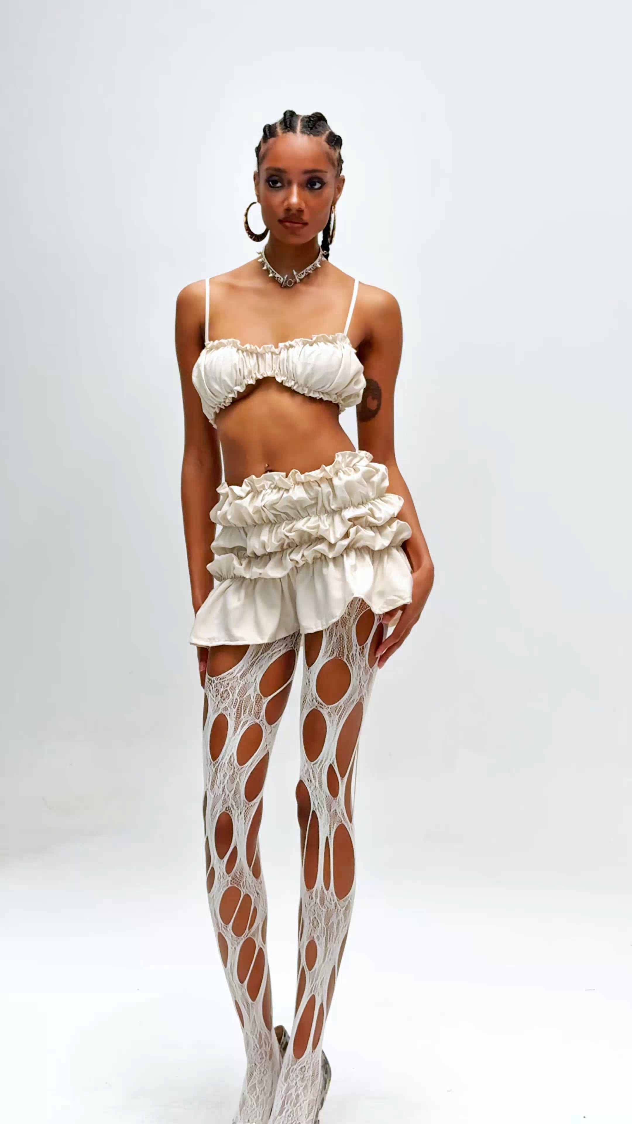 Benedict Ruffle Spaghetti Skirt Set In Apricot