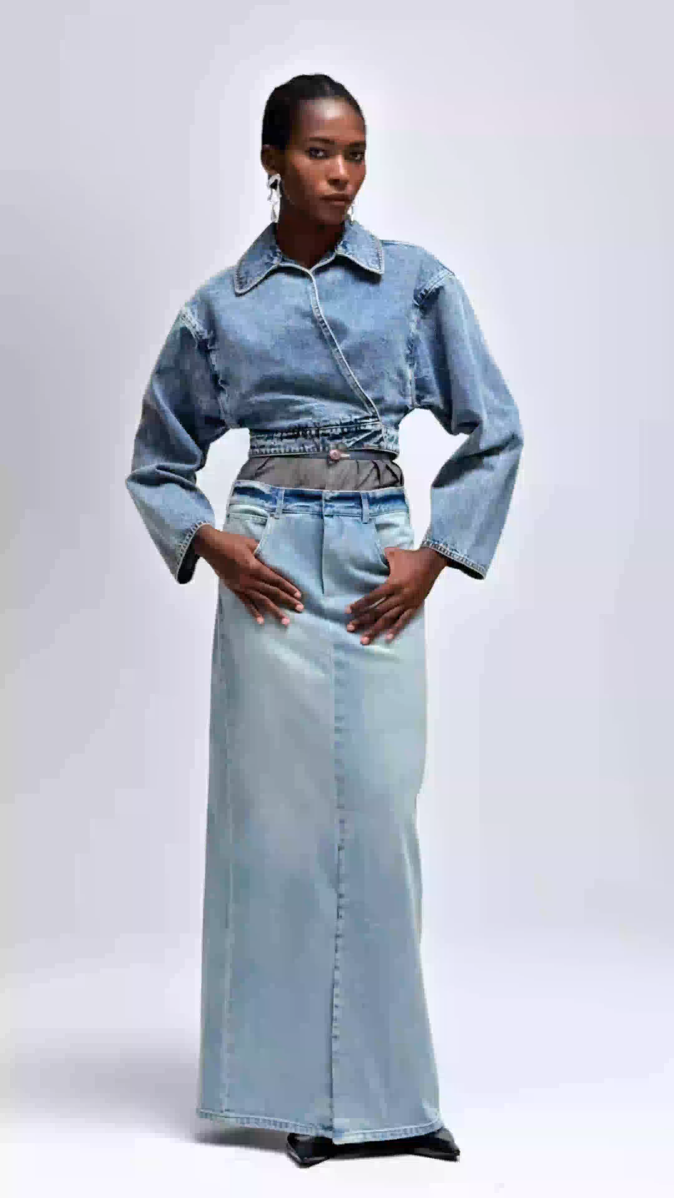 Introducing the Beth Deconstruct Split Denim Maxi Skirt, the perfect blend of fashion and functionality. This skirt features a unique deconstructed design and a high side split, giving you a modern and edgy look. Made with high-quality denim for comfort and durability. Upgrade your wardrobe with this statement piece.