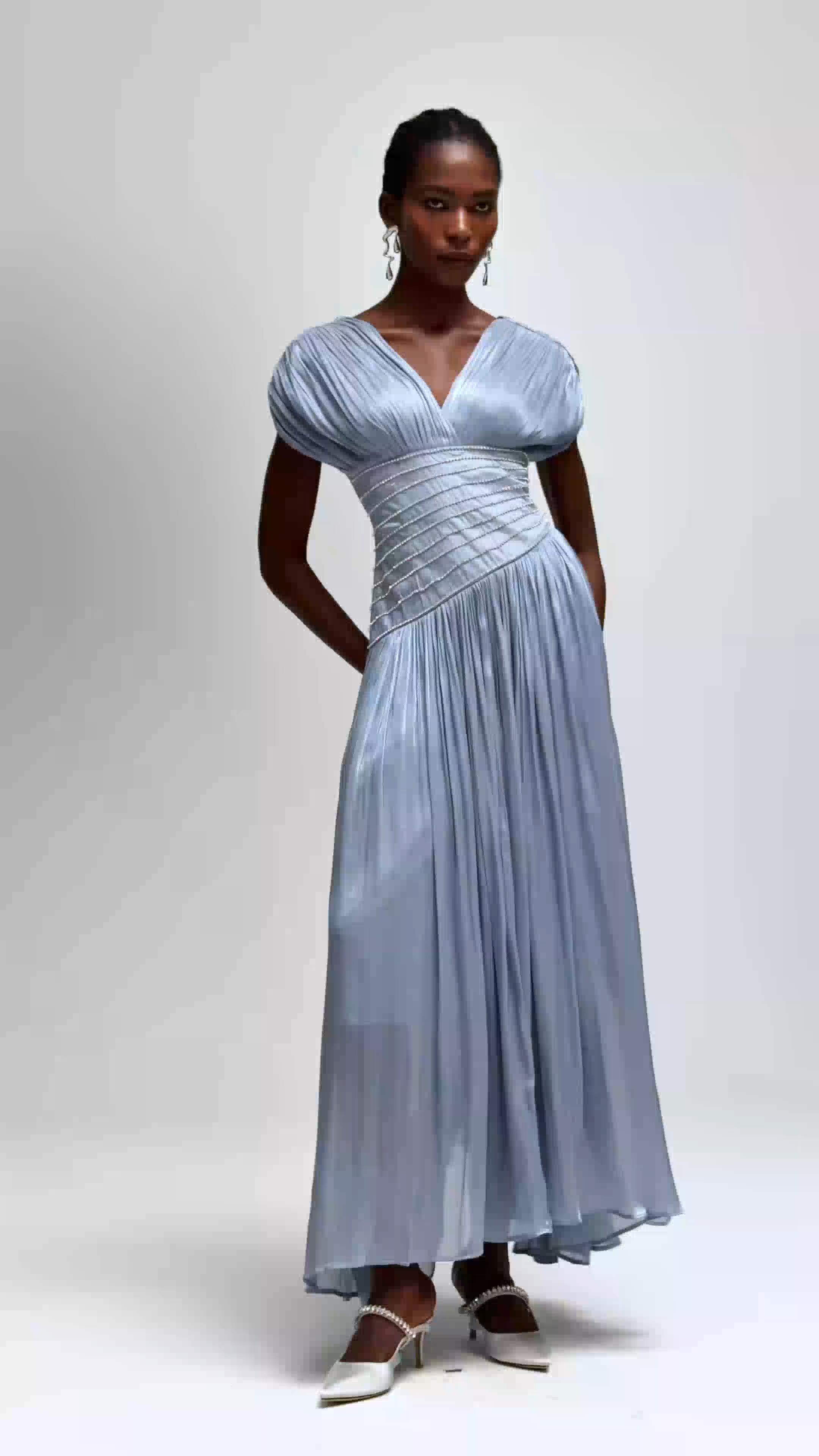 The Bohumila Ruch Plunge Maxi Dress combines elegant design with expert tailoring. Featuring a flattering plunging neckline and delicate ruching, this maxi dress enhances your silhouette while offering graceful movement. Crafted for both comfort and style, it is ideal for formal occasions or sophisticated evening events. Elevate your wardrobe with this timeless piece that balances modern allure and classic refinement.