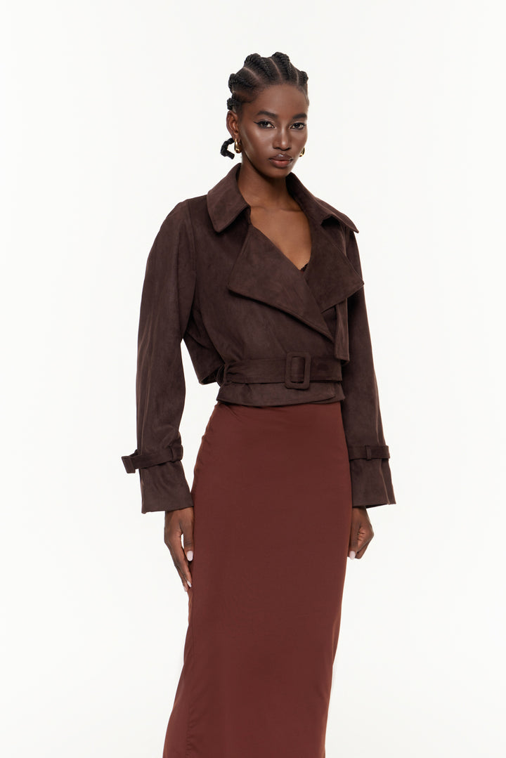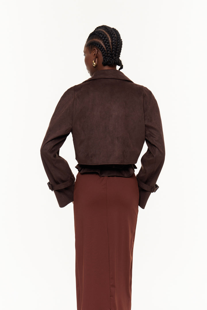 The Chioma Lapel Buckle Suede Jacket combines refined craftsmanship with contemporary design.  This jacket offers a sophisticated silhouette while providing durable comfort, making it an ideal choice for those seeking a versatile yet polished outerwear option. Perfect for elevating any wardrobe with expert-level quality and timeless appeal.